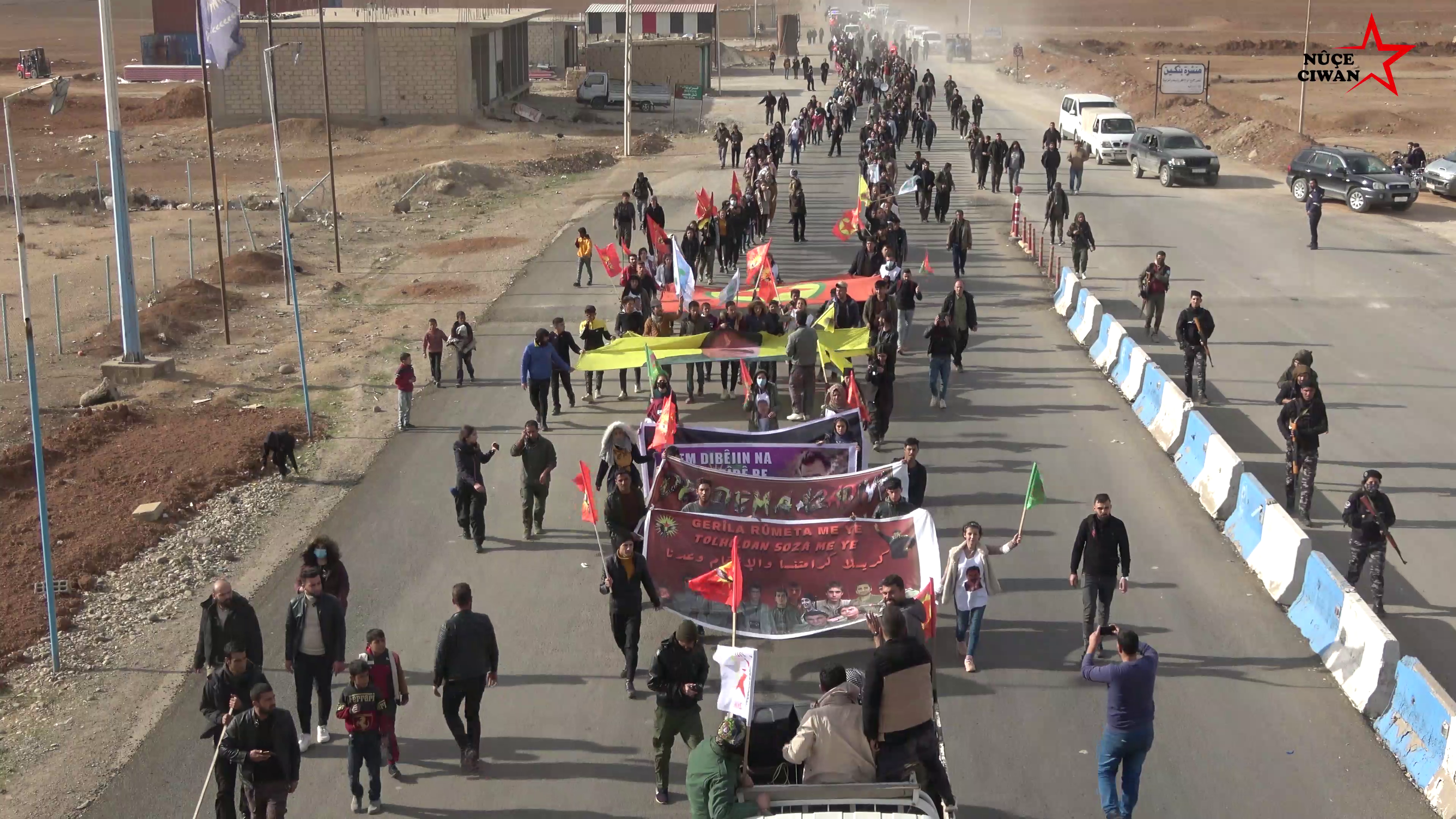 Benim adım Mustafa , Kobanê’liyim.Bugün uzun yürüyüşümüzün ikinci günü. Bizler Ciwanên Şoreşger olarak Önder Apo’nun üzerindeki tecridi asla kabul etmiyoruz. Bugün Ciwanên Şoreşger olarak Cizre bölgesinde başlattığımız yürüyüş ikinici gününde devam ediyor. Yürüyüşümüz yarın da devam edecek. Yürüyüşümüzün amacı Önderliğe karşı uygulanan tecrittir. Heyecan ve moralle yürüyoruz. Hiçbir güç bizim bu kararlılığımızı kıramayacaktır. Tevgera Ciwanên Şoreşger olarak zafere ulaşacağız. Kanımızın son damlasına kadar direneceğiz. Yaşasın gerilla direnişi.