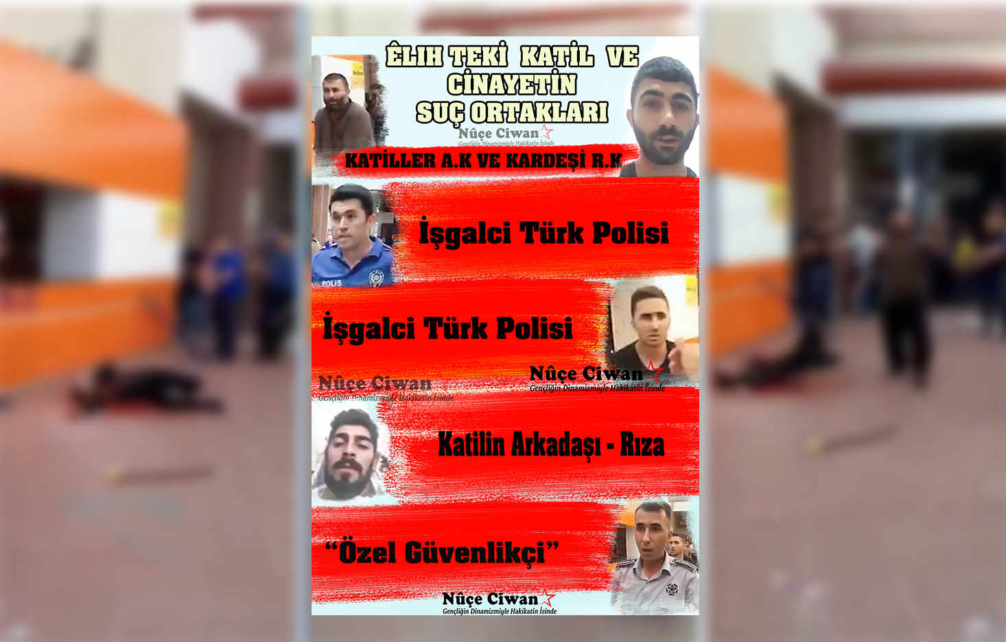 28 Ağustos günü Êlih’in Şehirler arası otogarında işgalci Türk polisi ve özel güvenlikçilerinin gözü önünde bir vahşet yaşandı. Vahşetin yaşandığı ilk gün Çukur Medya olayı sıradan bir sataşmadan çıktığına dair haberlerler servis etmiş işgalci Türk polisinin cinayetteki ortaklığını görmezden gelmişti. Fakat sonradan olay anına ait görüntülerin sosyal medyada paylaşılması ile cinayettin sadece iki kişinin işlemediği, işgalci Türk polisinin ve özel güvenlikçilerinin de kontrolü dahilinde yapıldığı ortaya çıktı.