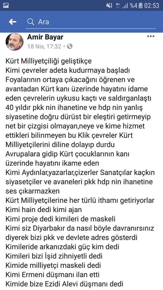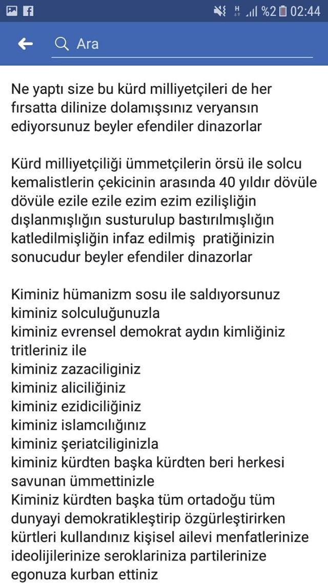 Şimdi de muhabirlerimizin yaptığı araştırmalarda elde ettiği bilgilerde, Facebook’ta KDP görünümlü olup Kürdistan Özgürlük Hareketi’ne saldıran birçok Aktoll hesap teşir edildi. Bu hesaplar kendini Kürt milliyetçisi olarak lanse edip, genel olarak Özgürlük Hareketi tarafından yapılan açıklamalara saldırıyor. Açıklamalara karşı kamuoyu yaratmaya çalışıyor. Sürekli olarak yalan ve sahte bilgilerle kitleleri hedef alıp, yönlendirmeye çalışıyor.