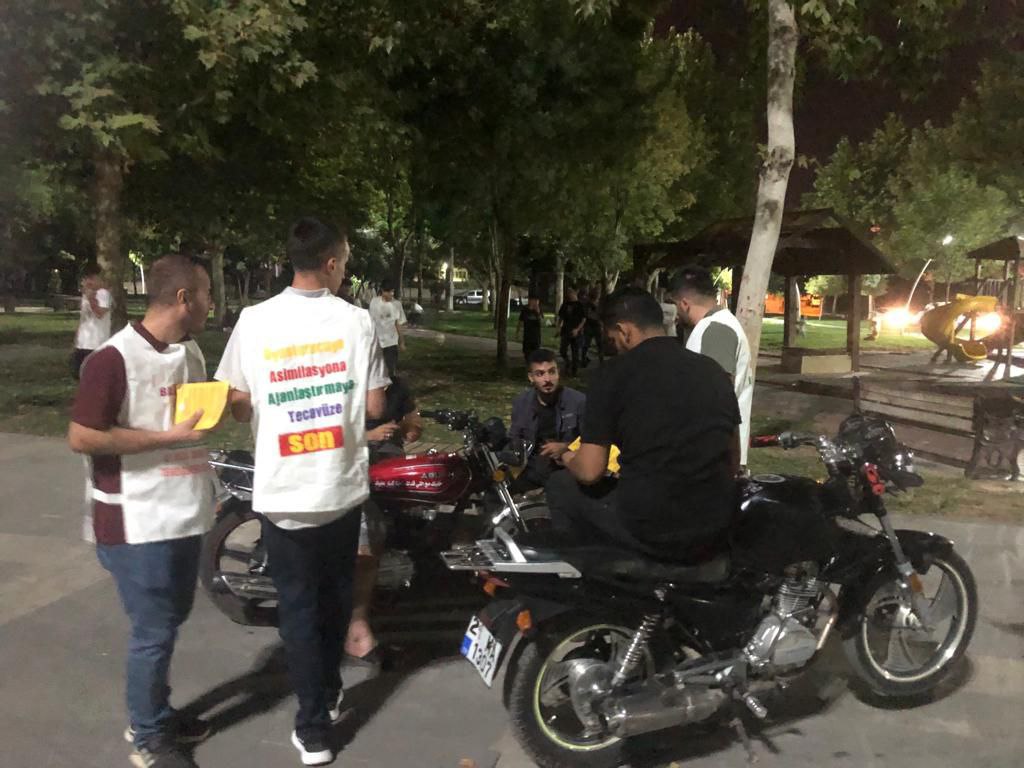 Yeşiller ve Sol Gelecekler Partisi (Yeşil Sol Parti) özel savaş politikalarına karşı başlattığı “Lı Dıjî Şerê Taybet Tekoşînek Bi Heybet- Özel savaş politikalarına karşı görkemli direniş) kampanyası kapsamında Elih Yeşil Sol Parti Gençlik Meclisi, sokaklarda halka bildiri dağıttı.