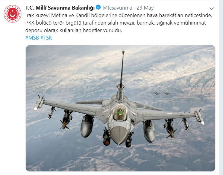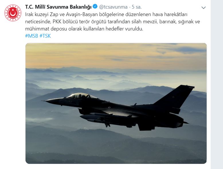 İşgalci Türk devletinin Milli Savunma Bakanlığı tarafından Twitter üzerinden yapılan duyuruda, 4 cümle ve daha önce çekilmiş F16 fotoğrafı kullanılıyor. Çetebaşı Erdoğan tarafından istifa ettirilip, Milli Savunma Bakanlığına getirilen Genelkurmay eski Başkanı Hulusi Akar, Bakan olduktan bu yana bu tür açıklamaların yapıldığı dikkat çekiyor.