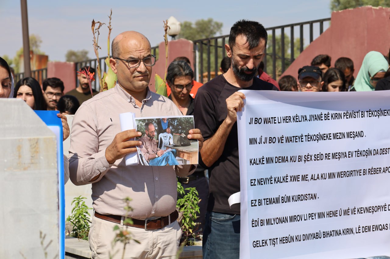 Özgür Basın Birliği (YRA) Eşbaşkanı Dilyar Cizîrî, Seyit Evran’ın şehadete ulaşmadan önce yazdığı son mesajı okuyarak, 30 yıllık mücadelesine vurgu yaptı. Ayrıca, YRA Yönetim Kurulu üyesi Evîn Îbrahîm de Seyit Evran’ın öğrencileri olarak mücadeleyi sürdüreceklerini belirtti.