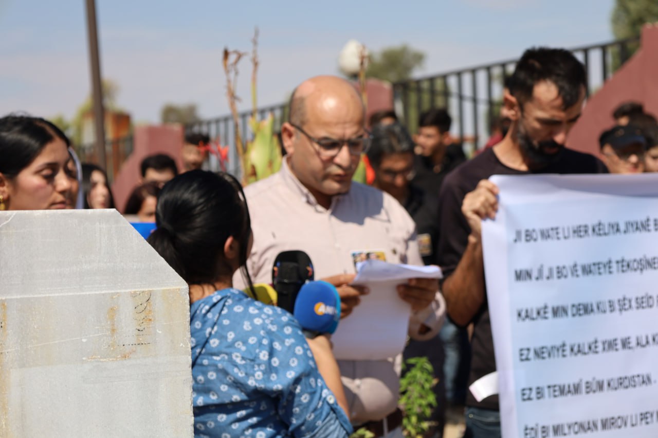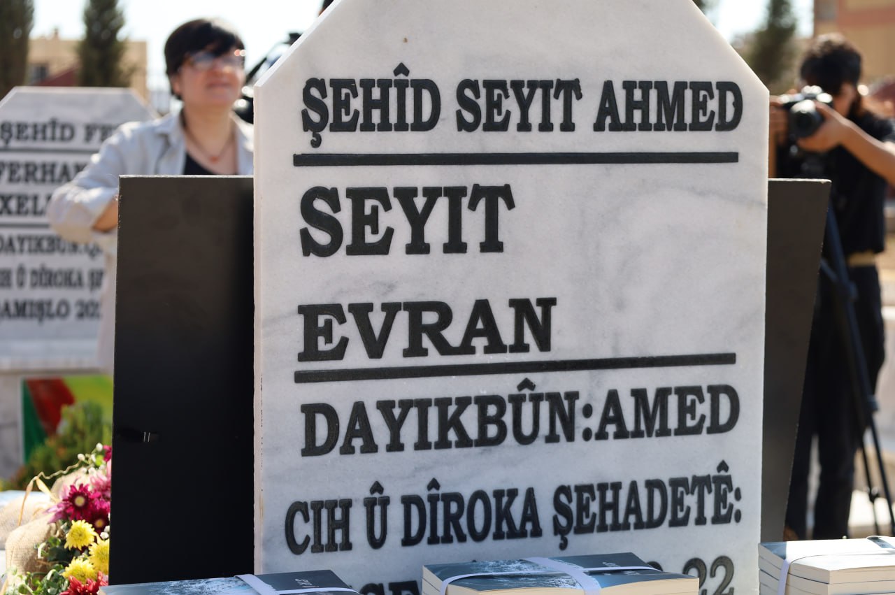 QAMIŞLO– Kuzey ve Doğu Suriye’de 22 Eylül 2023 tarihinde kalp krizi sonucu şehit olan Özgür Basın emekçisi Seyit Evran, şehadetinin birinci yılında yoldaşları ve meslektaşları tarafından mezarı başında anıldı.
