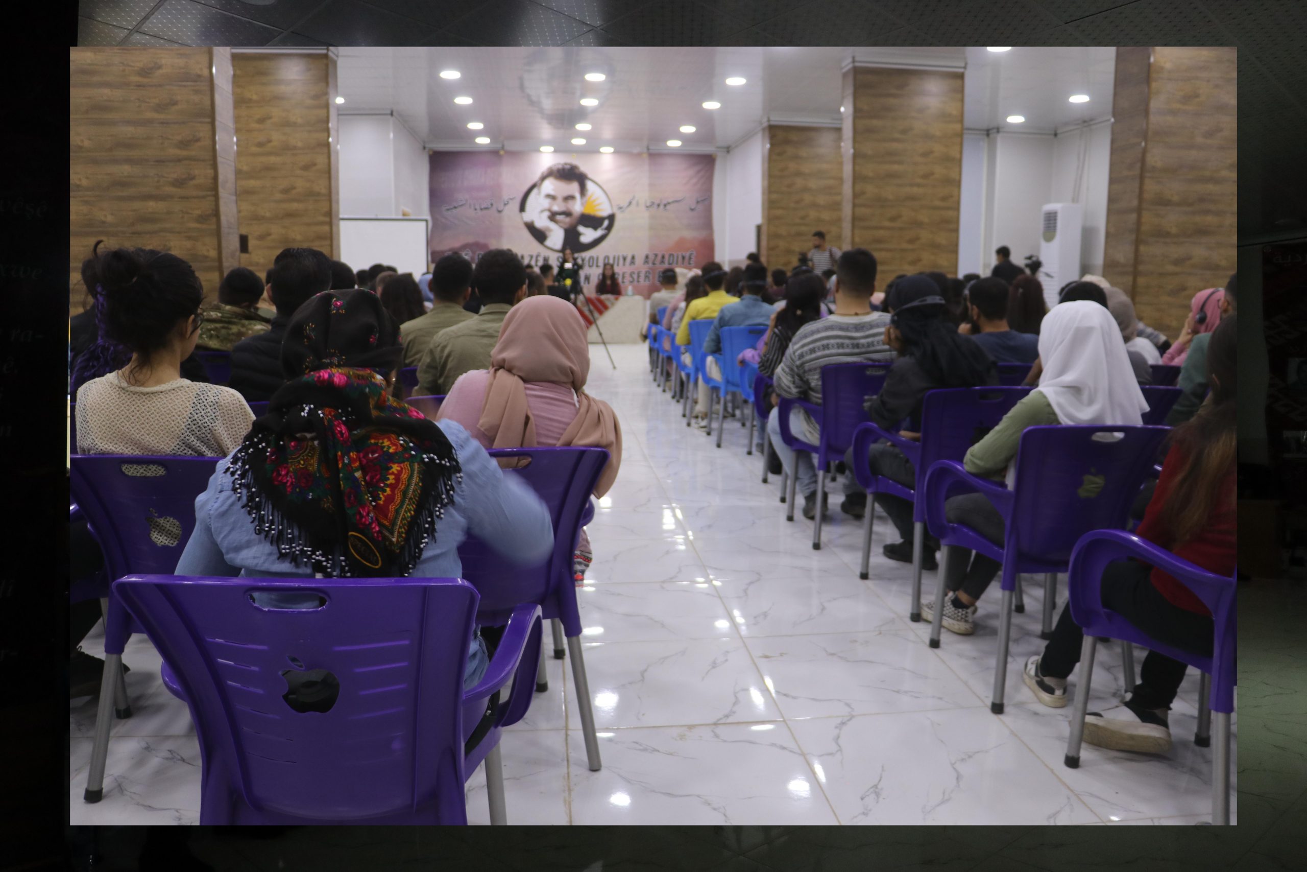 Suriye Önder Apo’ya Özgürlük İnisiyatifi Sözcüsü Ferzende Munzur’un açılış konuşmasının ardından Önder Apo’nun hayatı ve mücadelesi, Uluslararası Komplo ve Önder Apo’nun fiziki özgürlük mücadelesini konu alan bir sinevizyon izlendi. Daha sonra Mısırlı gençlerin ve Avrupa’ya göç eden Kürt öğrencilerin mesajları izlendi. Genç yaşta evlenmeyi konu alan videolar, bu gerçeği bizzat yaşayan gençlerin konuşmaları izlendi. Ardından Jinoloji Komitesi tarafından erken evlilik konulu bir seminer verildi.