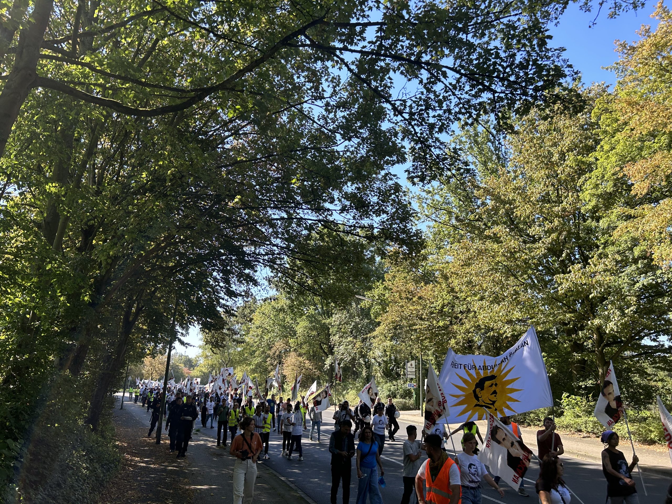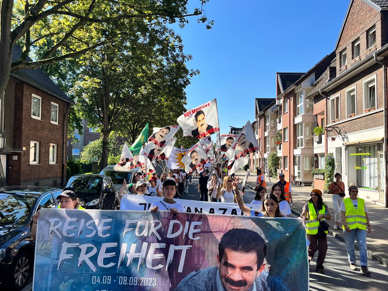 NEUSS – Önder Apo’nun fiziki özgürlüğü için bir araya gelen Kürdistan gençliği ve enternasyonel gençler 4 Eylül’de başlattıkları “Özgürlük Yolculuğu” yürüyüşünün 4. gününde Almanya’nın Neuss kentinden Düsseldorf kentine yaklaşık 15 km yürüyecekler. İlk günün heyecanı ve coşkusuyla başlayan yürüyüş, Önder APO’nun fiziki özgürlüğünü belirten sloganlar ile devam ediyor.