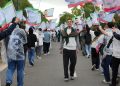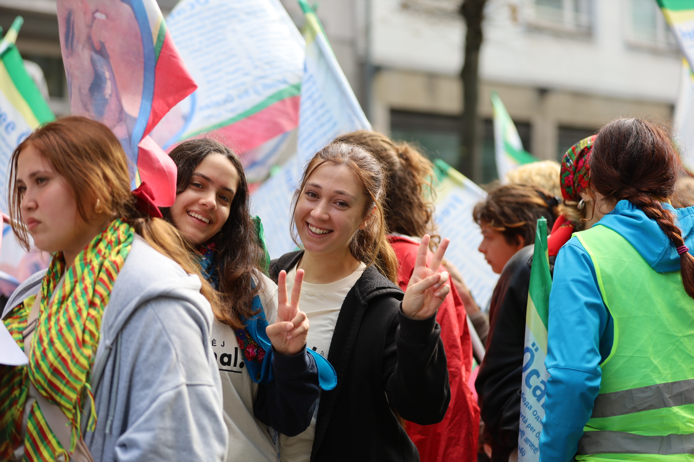 Öğle arasının ardından gençler, Düsseldorf şehir merkezine doğru yaklaşık 10 kilometrelik yürüyüşünü sürdürüp Essen’e doğru coşkulu yürüyüşlerini sürdürdü.