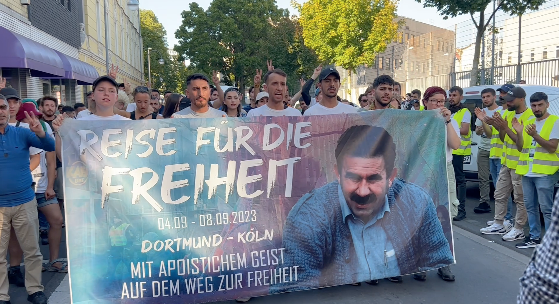KÖLN – Önder APO’nun üzerindeki ağırlaştırılmış tecridi ve yaklaşık 30 aydır haber alınamamasını protesto etmek ve Önder APO’nun fiziki özgürlüğünü sağlanması için Kürdistanlı ve enternasyonalist gençlerin, Almanya’nın Dortmund kentinde bir araya gelip beş günlük ‘’Özgürlük Yolculuğu’’ sonrası Almanya’nın Köln Mülheim kentine doğru yol alıp eylemlerini tamamladılar.