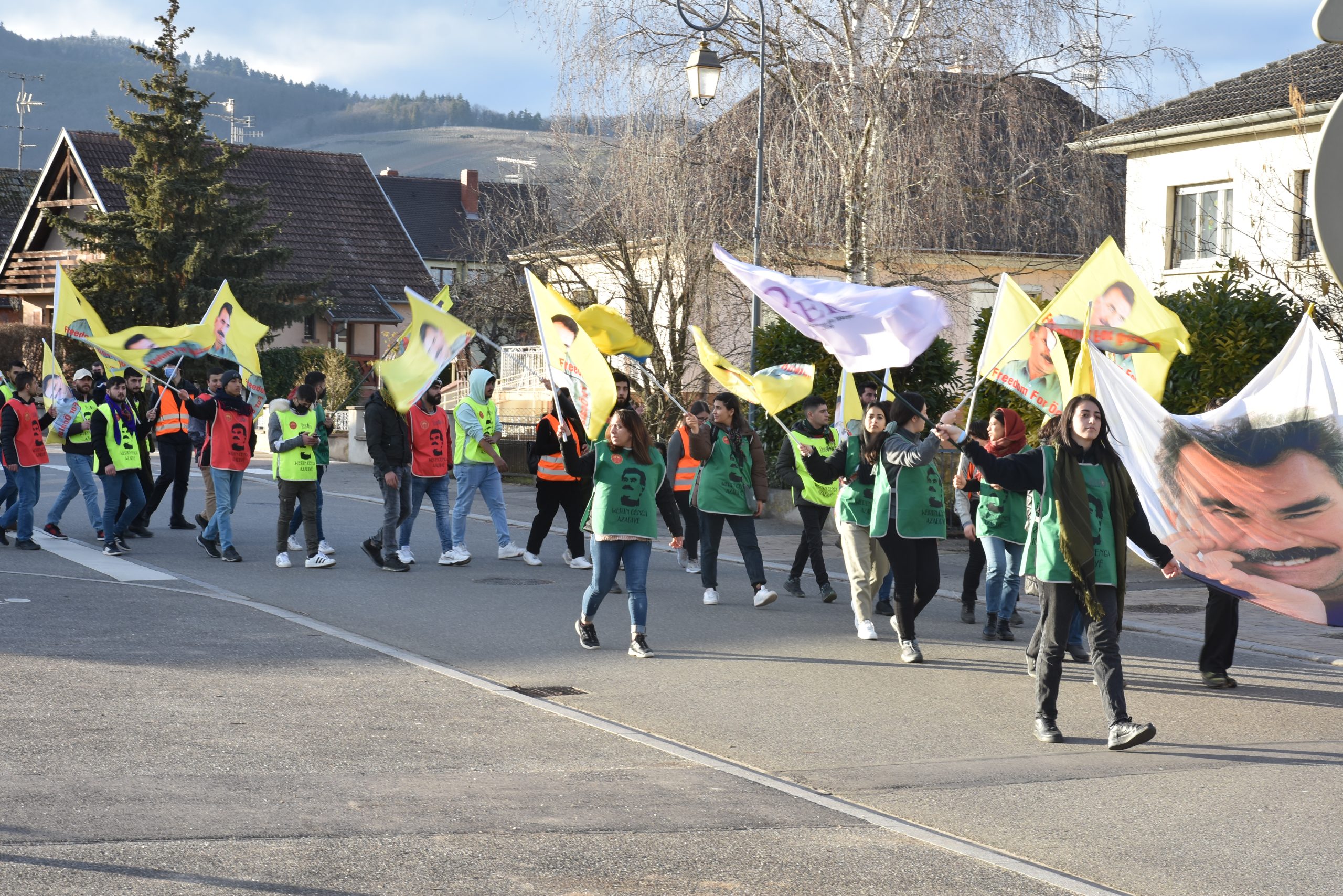 Uzun Yürüyüş eylemi Colmar‘da saat 11.00‘da başladı. Yürüyüş boyunca Fransızca “Apocu Gençliğin İradesiyle Rêber Apo‘yu Özgürleştireceğiz“ pankartı ve Abdullah Öcalan‘ın İngilizce, Fransızca ve Kürtçe sözlerinin yazılı olduğu dövizler yer aldı.