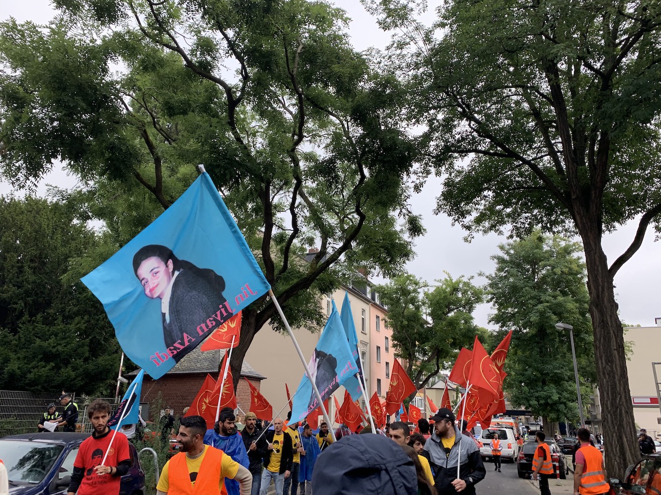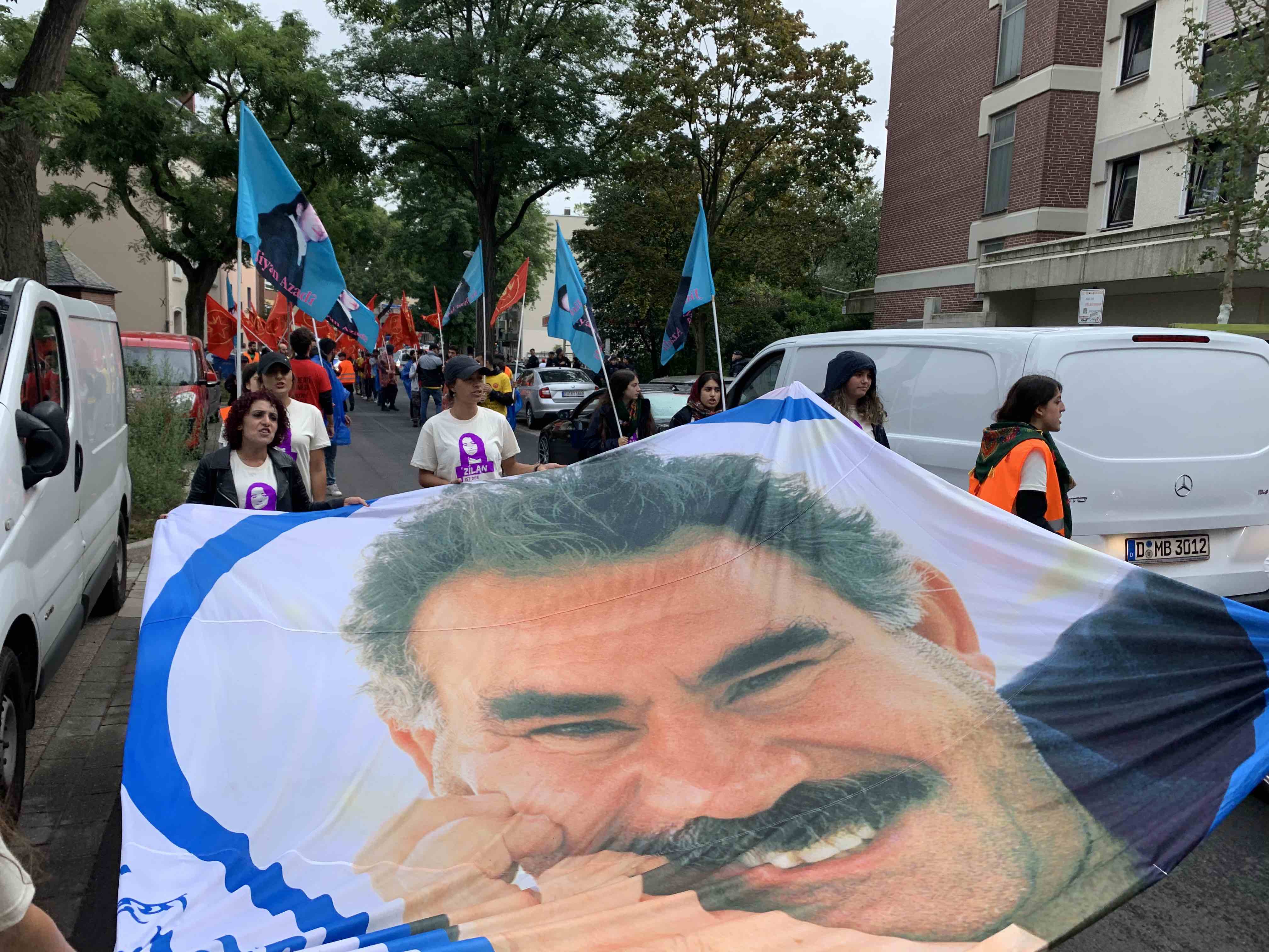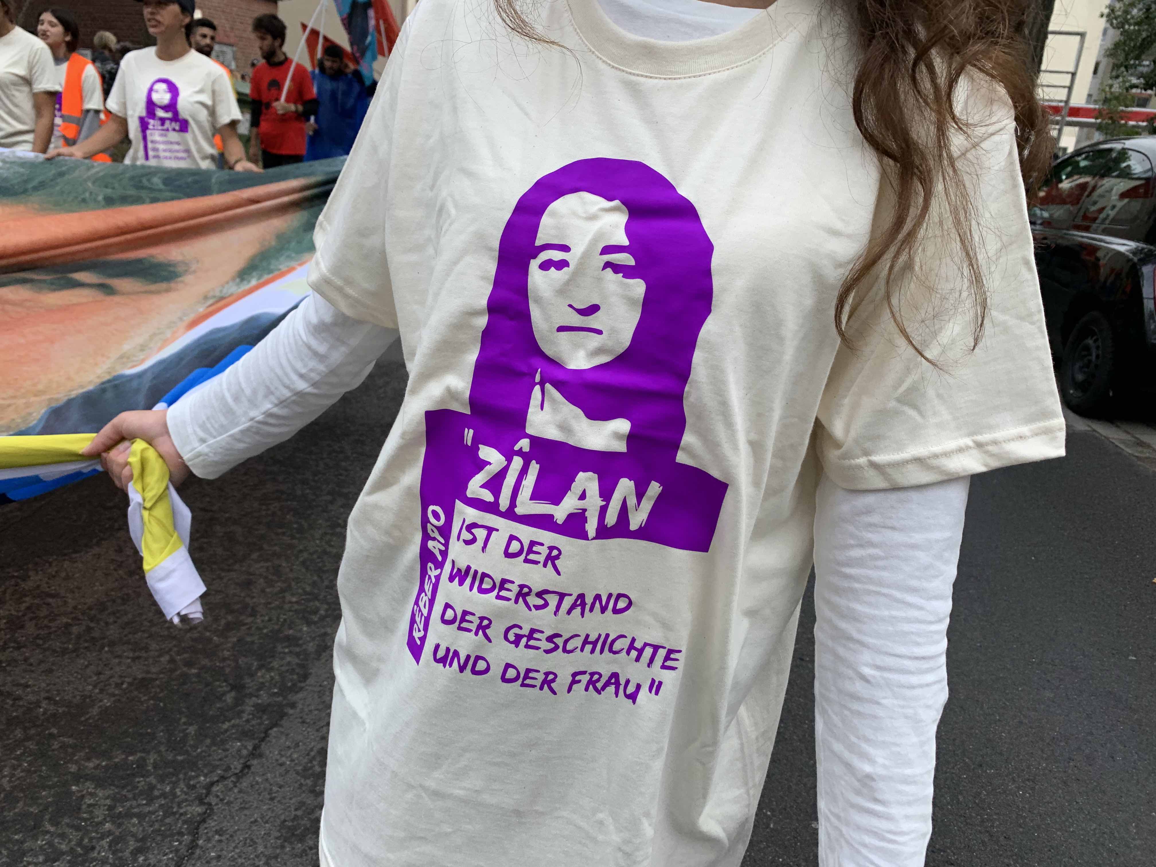 Sabah 10’da Düsseldorf’ta gençlerin toplanmasıyla yağmurlu bir havada başlayan yürüyüş, bugün genç kadınlar öncülüğünde yapılıyor. Dersim’de 1996 yılında fedai eylem gerçekleştiren Zeynep Kınacı’nın resminin olduğu ve ‘Zîlan, tarihin ve kadının direnişidir. Rêber APO’ yazan t-shirtlerle ve Tevgera Ciwanên Şoreşger ve Şehit Zîlan bayraklarının açıldığı yürüyüşte sık sık ‘Jin, Jiyan, Azadî’ , ‘Bê Serok Jiyan Nabe’ , ‘Ciwan fedaiyê Serok APO’ye’ sloganları atılıyor.