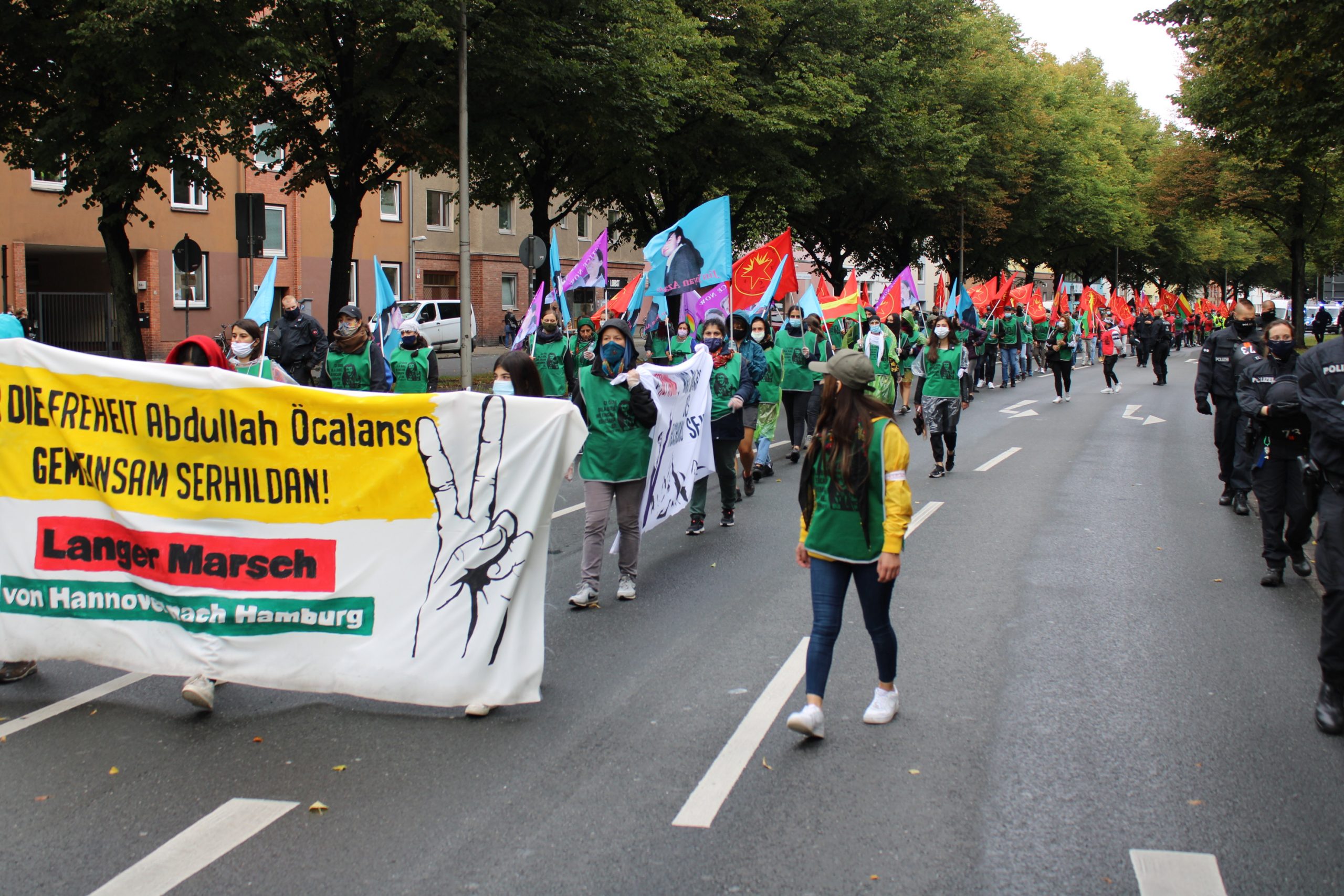 Hannover ve Lehrte arasında toplamda 20 km’lik bir yol kateden gençler, Alman polisinin katı yasakçı anlayışına ve provokatif yönelimlerine rağmen yürüyüşü hedefledikleri gibi noktaladı. Halklar Önderi Abdullah Öcalan’a karşı geliştirilen devletlerarası komployu kabul etmeyeceklerini sık sık dile getiren Kürt ve enternasyonalist gençler, faşizme ve kapitalizme karşı birlikte direniş perspektifiyle karşı koyacaklarını belirttiler.