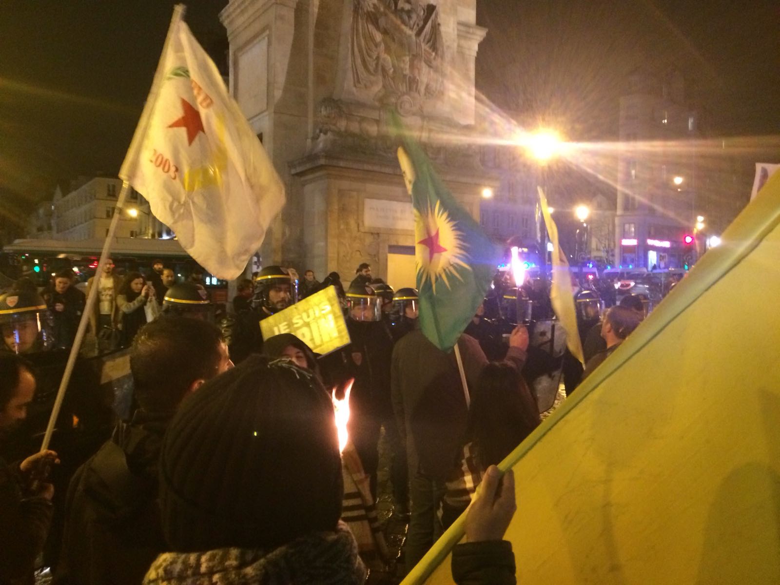 PARİS-Dün Akşam saat 19:30’da, Efrîn’deki saldırılara tepki göstermek amacıyla Ciwanên Azad öncülüğünde Paris’te meşaleli bir yürüyüş yapıldı. Gare de l’Est’de başlayan yürüyüş Strasbourg Saint Denis’de sona erdi. Kitlesel geçen yürüyüşte sık sık Fransızca ve Kürtçe sloganlar atıldı: “Partout afrin partout resistance” (her yer Efrîn her yer direniş) “afrin n’est pas seul” (afrin yanlız değıl).