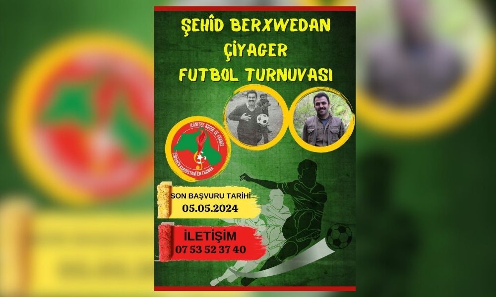 PARİS- CKF yaptığı yazılı açıklamada “Paris’te katledilen Evîn Goyî’ den aldığı direniş bayrağını, Paris’ten Rojhilat’a taşıyan Berxwedan Çiyager’in anısına düzenleyeceğimiz futbol turnuvasına Paris ve çevresinde bulunan tüm Kürt gençlerini ve dostlarını davet ediyoruz.” dedi.