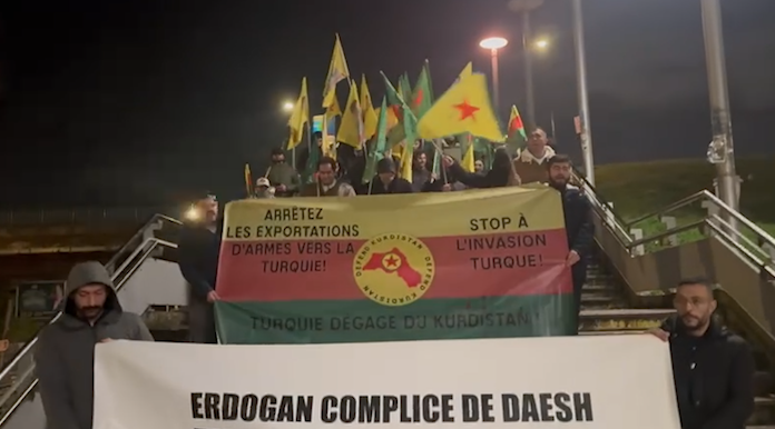 PARİS – Paris’in Grigny banliyösünde Tevgera Ciwanên Şoreşger (TCŞ) üyesi gençler öncülüğünde, Faşist Türk devletinin ve çetelerinin Kuzey ve Doğu Suriye’ye dönük saldırılarına karşı protesto eylemi gerçekleştirildi.