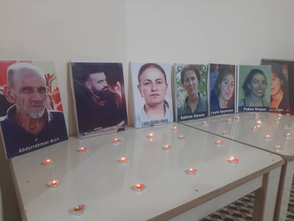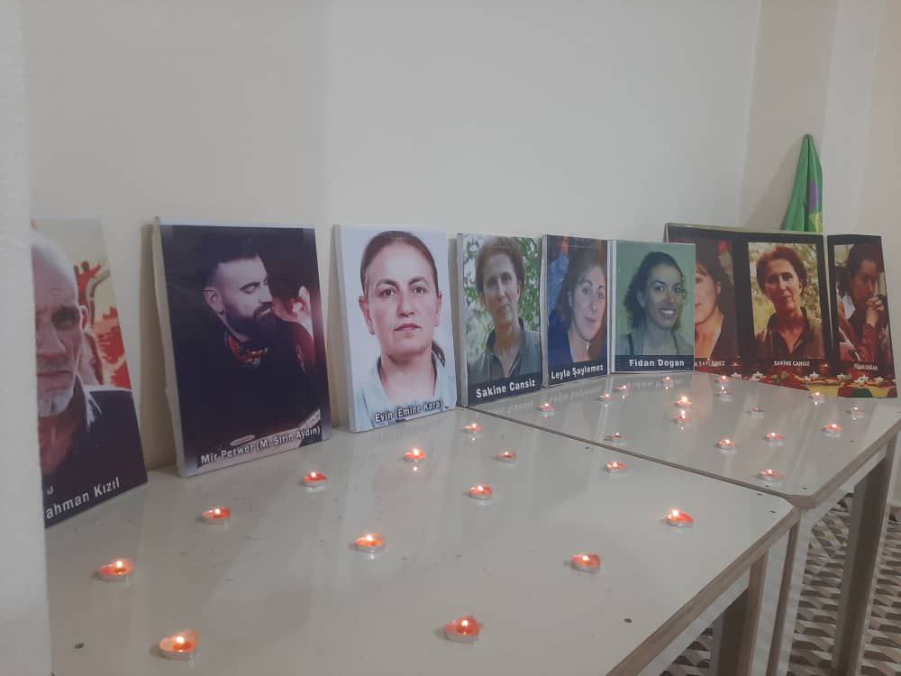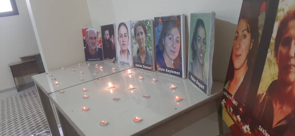 KOBANÊ- Kobanê Üniversitesi Genç Kadınlar Birliği, 9 Ocak 2013’te Paris’te yaşanan katliamın şehitleri Sakîne Cansız (Sara), Fîdan Doğan (Rojbîn) ve Leyla Şaylemez (Ronahî)’yi anma etkinliği düzenledi. Faşist Türk devletinin istihbaratı ile 3 kadın devrimci şehit edilmiş ve Fransız devleti bugüne kadar sorumluların adalet önüne çıkarılması konusunda ciddi bir yanıt vermemiştir. Bir yıl önce 23 Aralık 2022’de hedef alınan şehitler Evin Goyi (Emine Kara), Mir Perwer ve Abdurrahman Kızıl da anıldı.