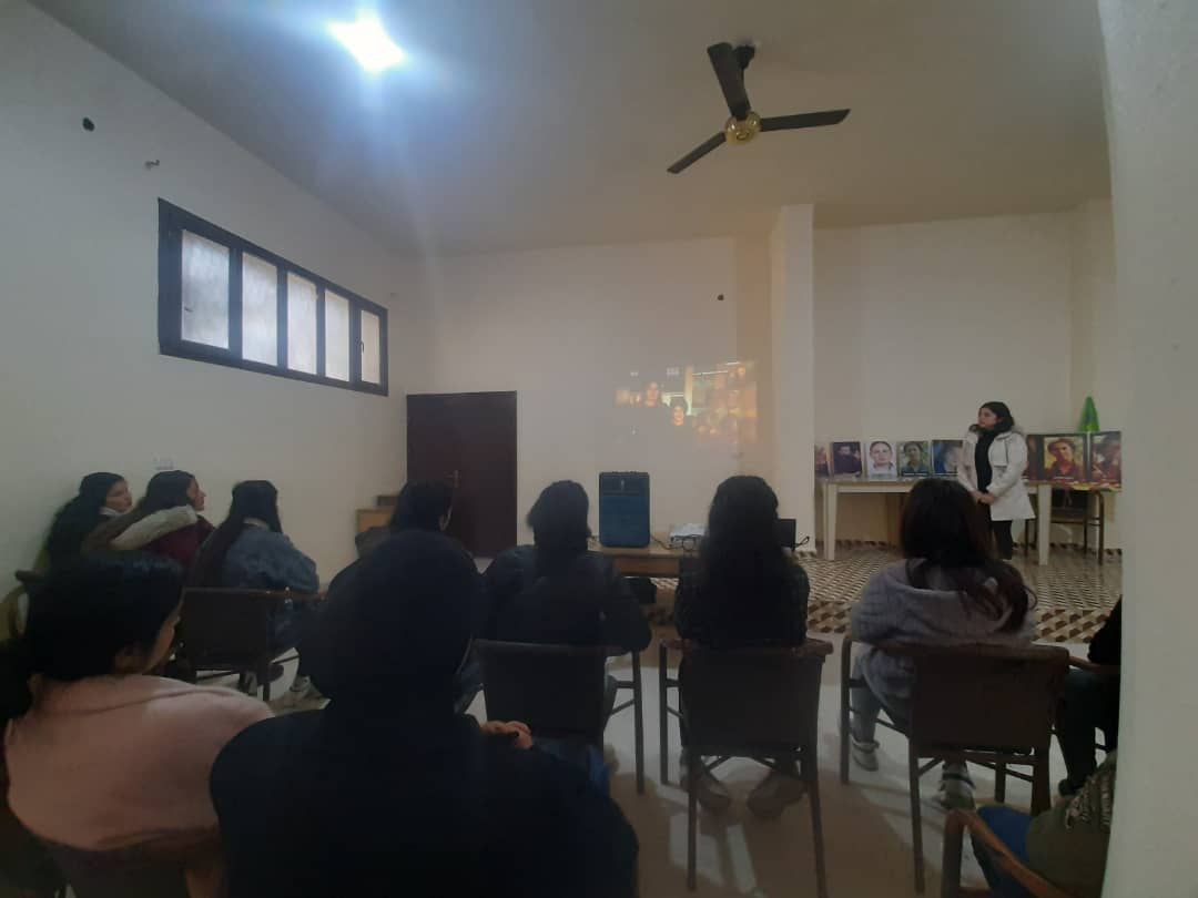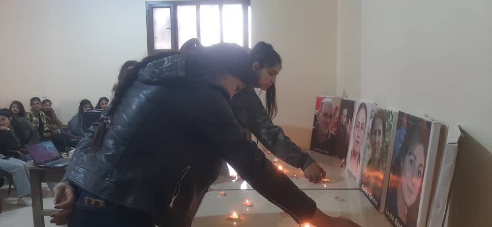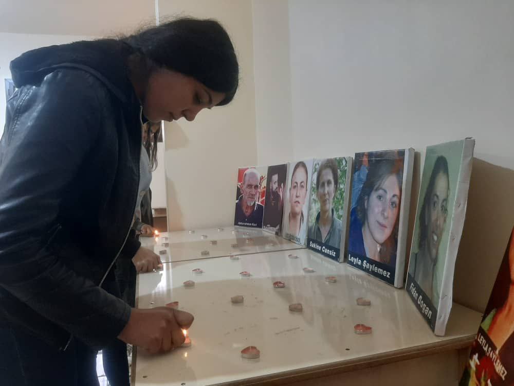 Daha sonra şehitlerin görüntüleri önünde mumlar yakılarak Genç Kadınlar Birliği adına şehitlerin mücadelesi ve öğrencilerin bu mücadeleye yönelik sorumluluğu hakkında bir konuşma yapıldı.