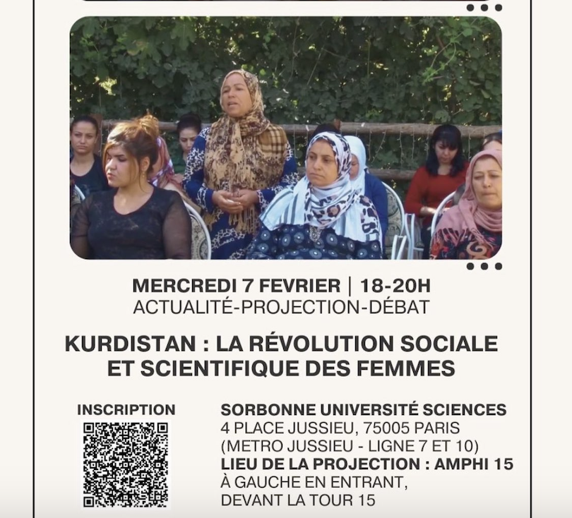 PARİS – JXK (Kurdistan Kadın Öğrenciler) Jineoliji meclisi 7 Şubat saat 18.00 ile 20.00 arası Paris Sorbonne üniversitesinde Kadın ve Zihniyet devrimi üzerine etkinlik düzenleyecek.