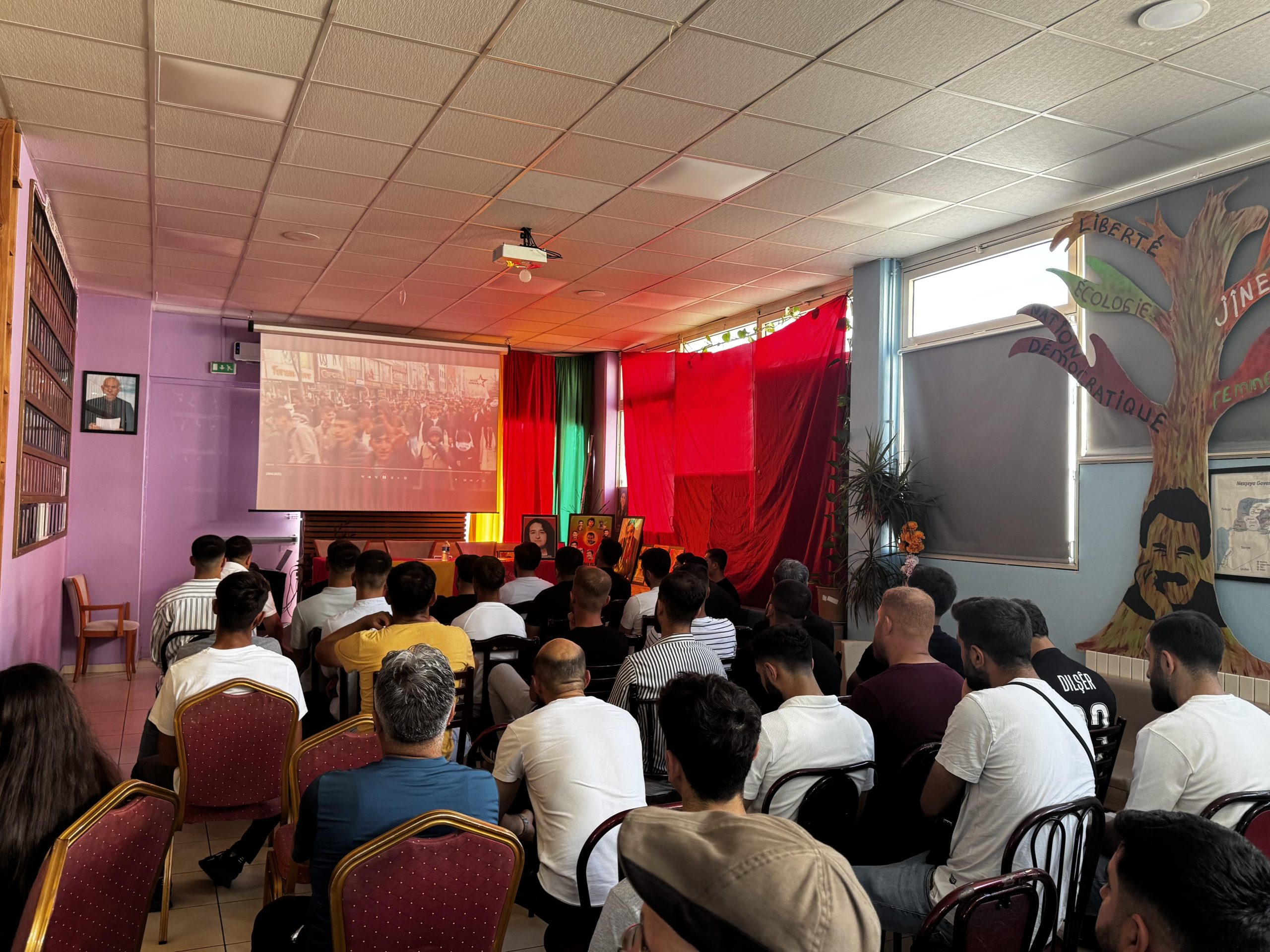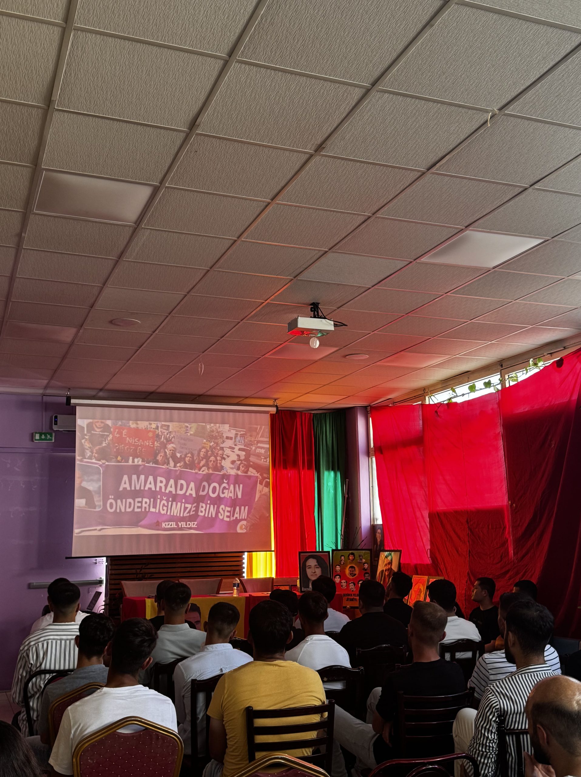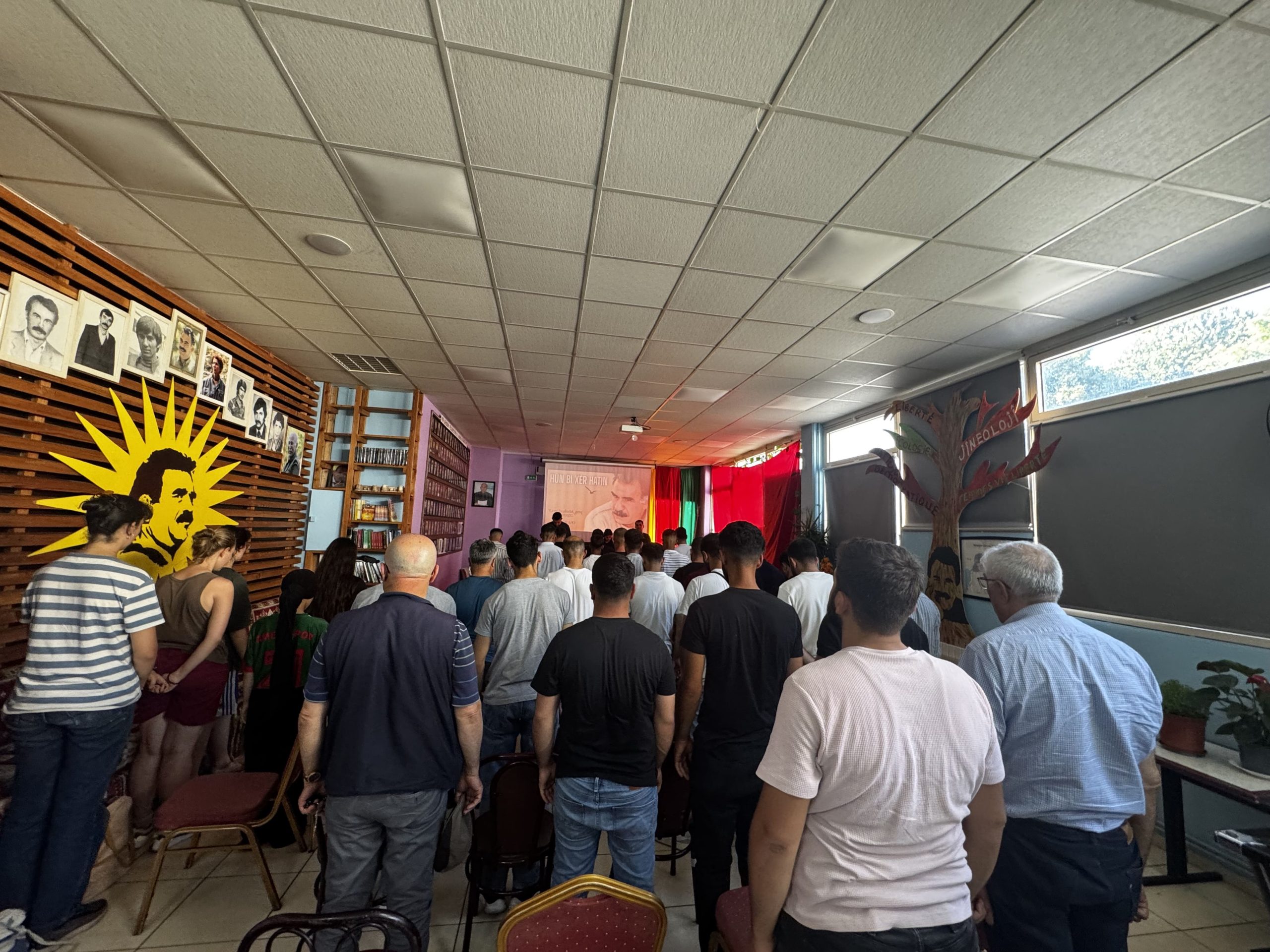 Yaklaşık üç buçuk saat süren seminer, “Bijî Serok APO” ,“Bê Serok Jiyan Nabe” ve “Ciwan fêdayî Rêber APO ye”sloganları eşliğinde sona erdi.