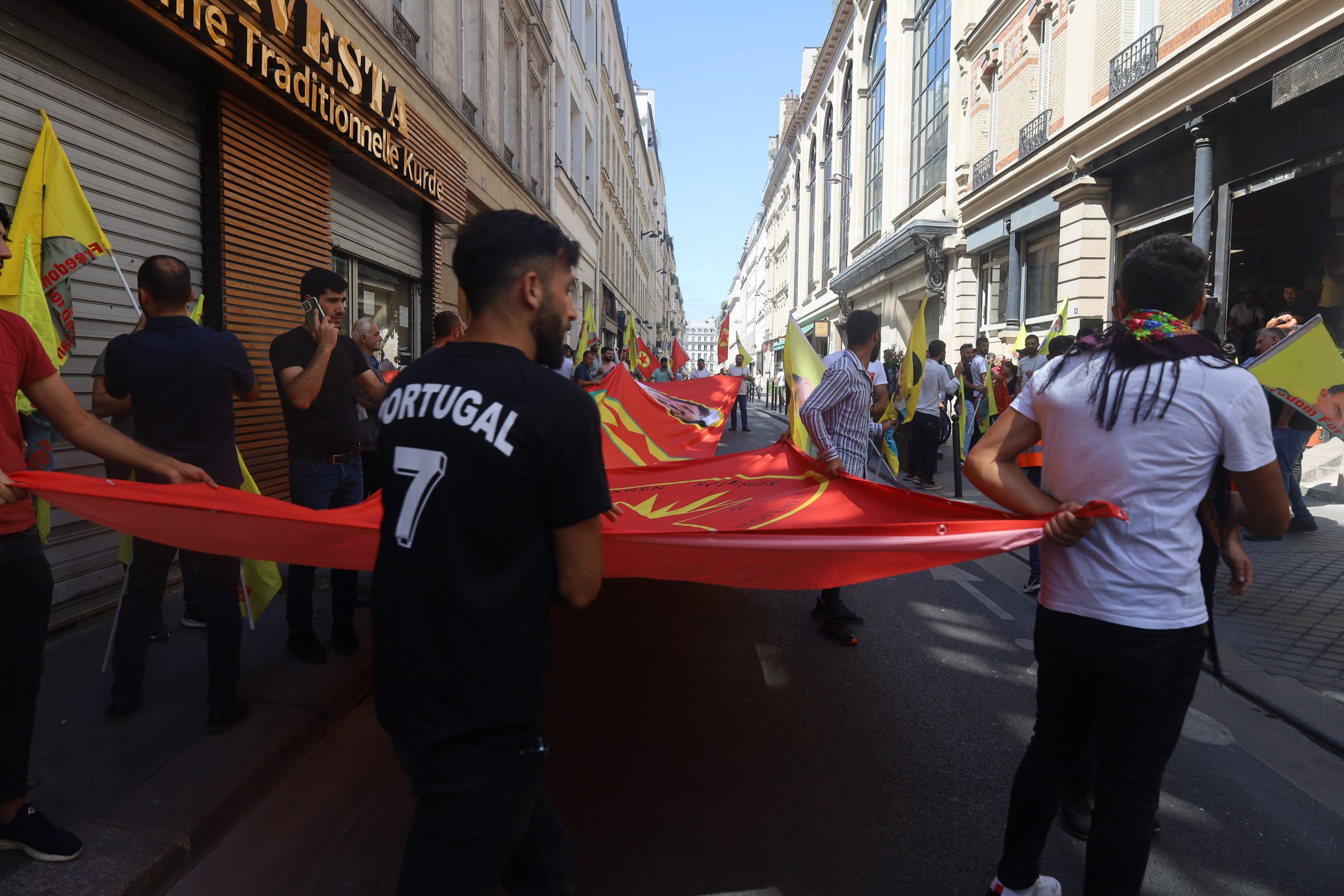Konuşmaların ardından kitle “Cenga Azadiyê Geş Bıke Rêber APO Azad Bıke”pankartı, “Freedom for Öcalan, Faşist Erdoğan, Bijî Gerîla” dövizleri ile Ahmet Kaya DKTM ve National arasında yürünülecek etap için yola çıktı. Kitle Yürüyüş boyunca Fransızca, Türkçe, Kürtçe sloganlar ve Rêber APO’nun fiziki özgürlüğü için bildiriler okuyup dağıttı. Gençlerin uzun yürüyüşünde ayrıca Öcalan’a Özgürlük kampanyası çerçevesinde imzalarda toplandı.