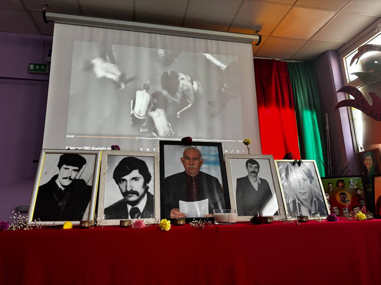 PARİS – Fransa’nın başkenti Paris’te, Villiers-le-Bel bölgesinde yer alan Demokratik Kürt Toplum Merkezi‘nde Ciwanên Kurdistaniyên Fransa (CKF) öncülüğünde 14 Temmuz 1982’de “Büyük Ölüm Orucu” direnişini başlatan PKK’nin öncü kadroları Kemal Pir, Hayri Durmuş, Akif Yılmaz ve Ali Çiçek’in şehadetlerinin 43. yıl dönümünde anma gerçekleştirildi.