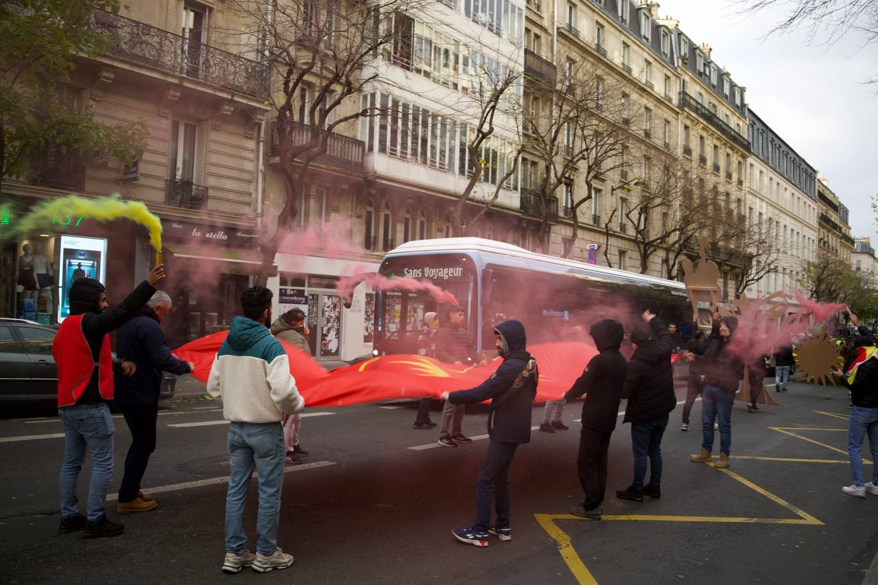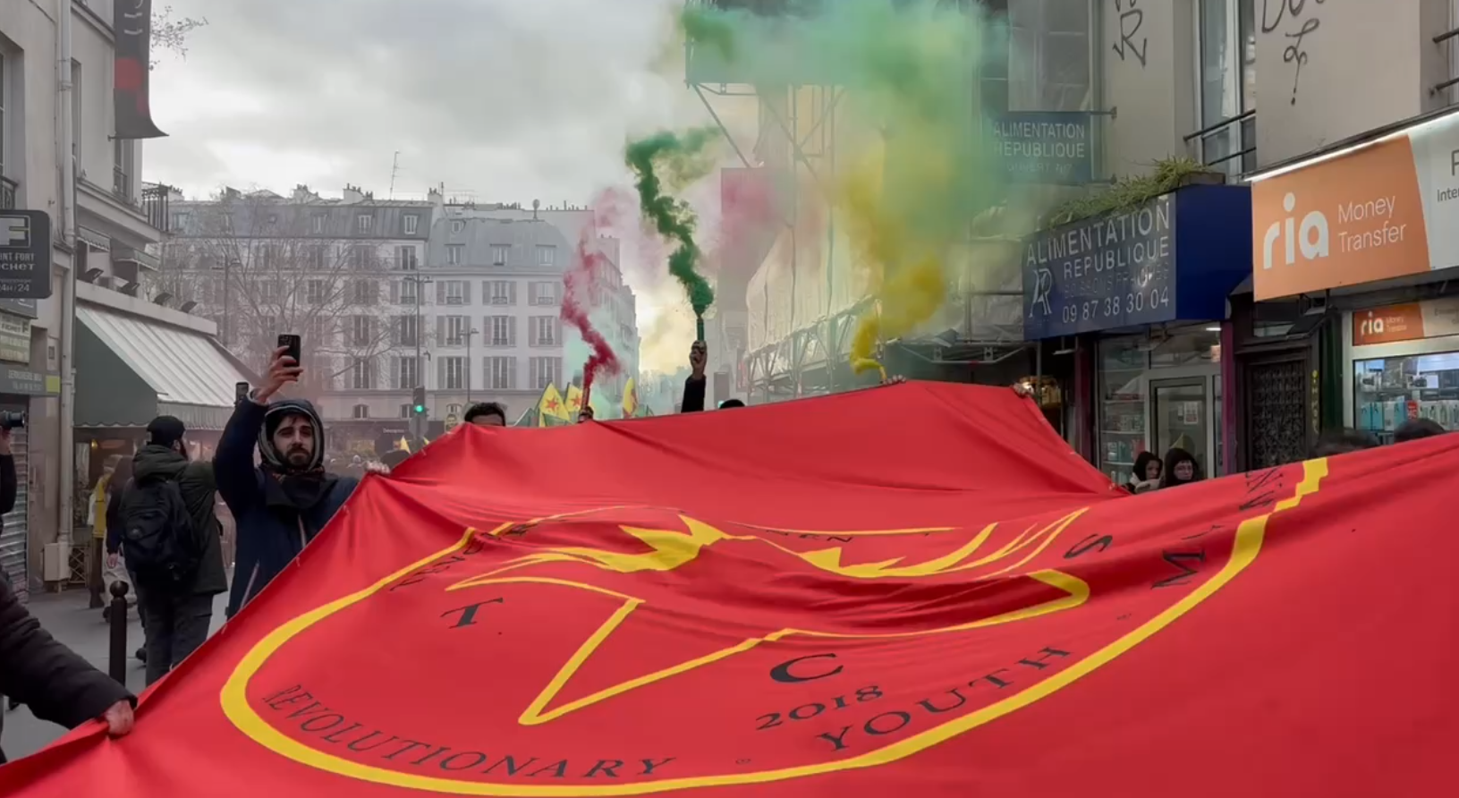 PARİS – Tevgera Ciwanên Şoreşger (TCŞ) üyesi gençler öncülüğünde “Önder APO’ya Özgürlük Kürt Sorununa Çözüm” hamlesi kapsamında binlerce genç ve Kürdistanlı alanlara aktı. Yürüyüş Stalingrad Meydanı’nda mitinge dönüştü. Mitingde TCŞ ve CDK-F adına açıklamalar yapıldı.