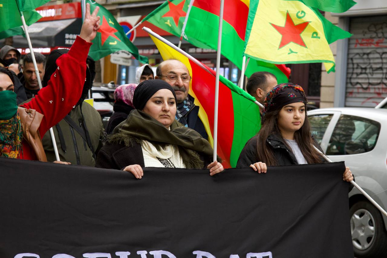 Yürüyüş boyunca “Biji Berxwedana Rojava” (Yaşasın Rojava Direnişi), “Biji YPG” (Yaşasın YPG), “Biji YPJ” (Yaşasın YPJ), “Biji Serok APO” (Yaşasın Önder APO) ve “Öcalan’a Özgürlük” sloganları yankılandı.