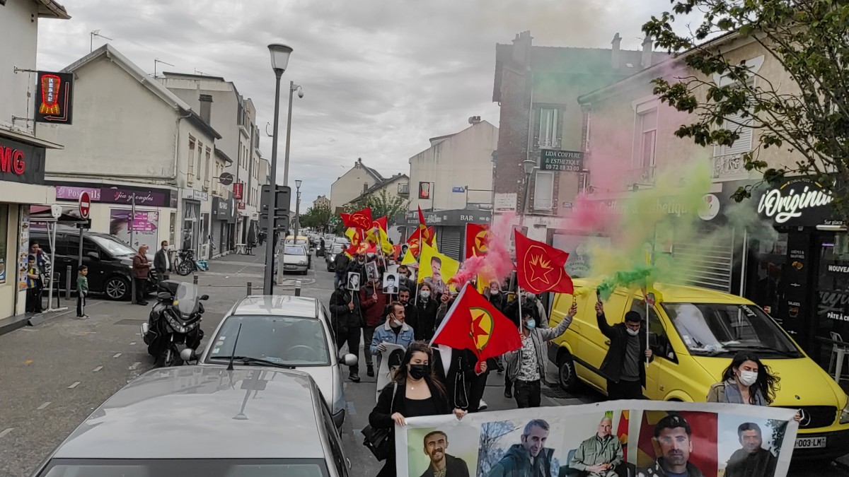Yürüyüş esnasında sık sık “Bijî Serok APO”, “Be Serok Jiyan Nabe”, “Libere Öcalan” ve “Bijî Berxwedana Gerîla” sloganları atan gençler, renkli dumanlarla yürüyüşlerine görsellik kattılar.