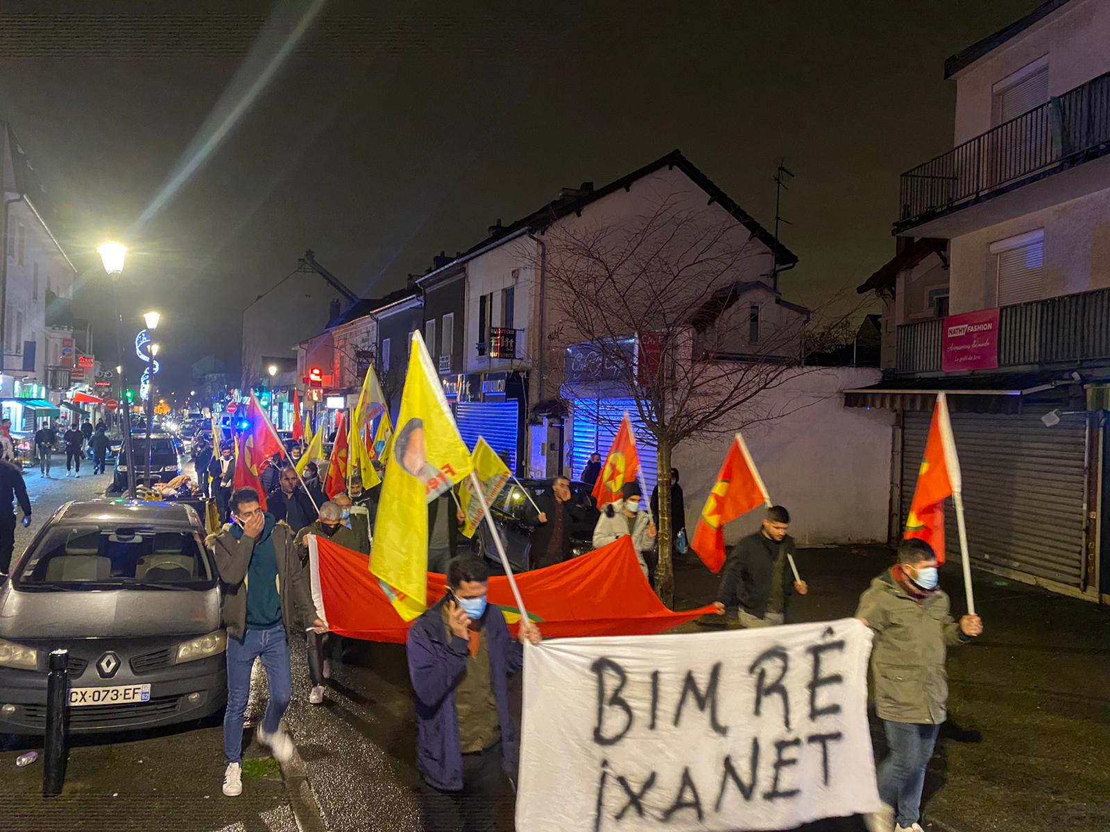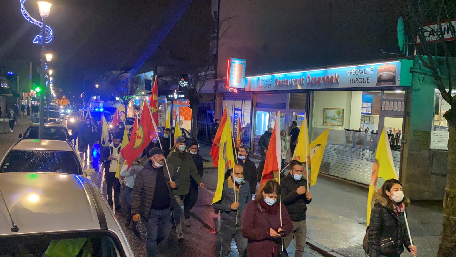 Villiers Le Bel garı önünde başlayan yürüyüş, bölgede bulunan Demokratik Kürt Toplum Merkezi önünde, tüm devrim şehitleri adına gerçekleştirilen bir dakikalık saygı duruşunun ardından, gerçekleştirilen bir mitingin ardından son buldu.