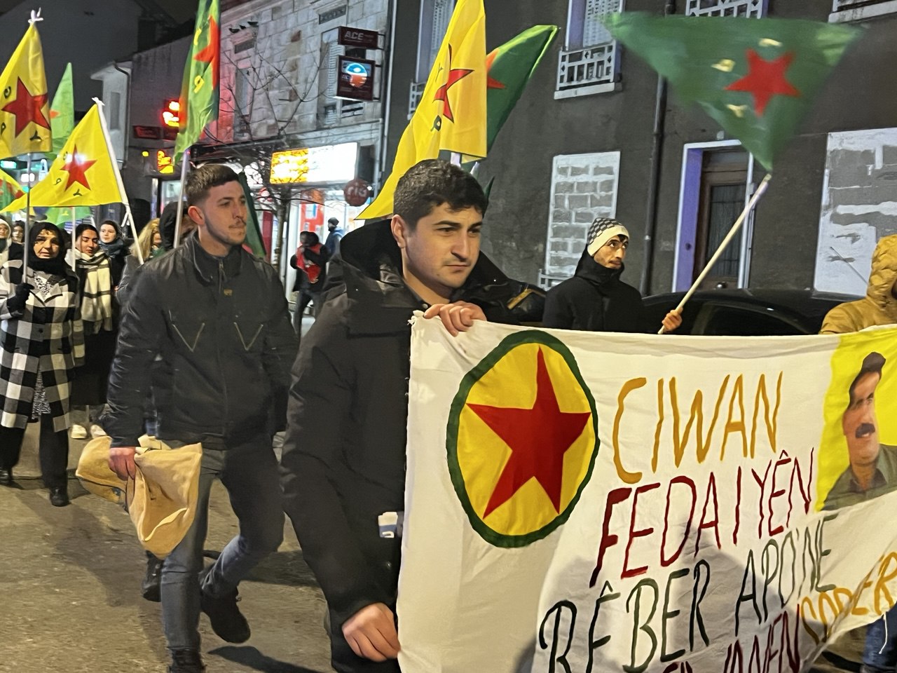 Viilers Le Bel Merkez Tren Garı önünde yürüyüş eylemine başlayan Kürdistanlılar, yürüyüş boyunca “Bijî Serok APO”, “Bijî Berxwedana YPG”, “Bijî Berxwedana YPJ”, “Bijî Berxwedana YPJ” ve “Jin Jiyan Azadî” sloganları attı.