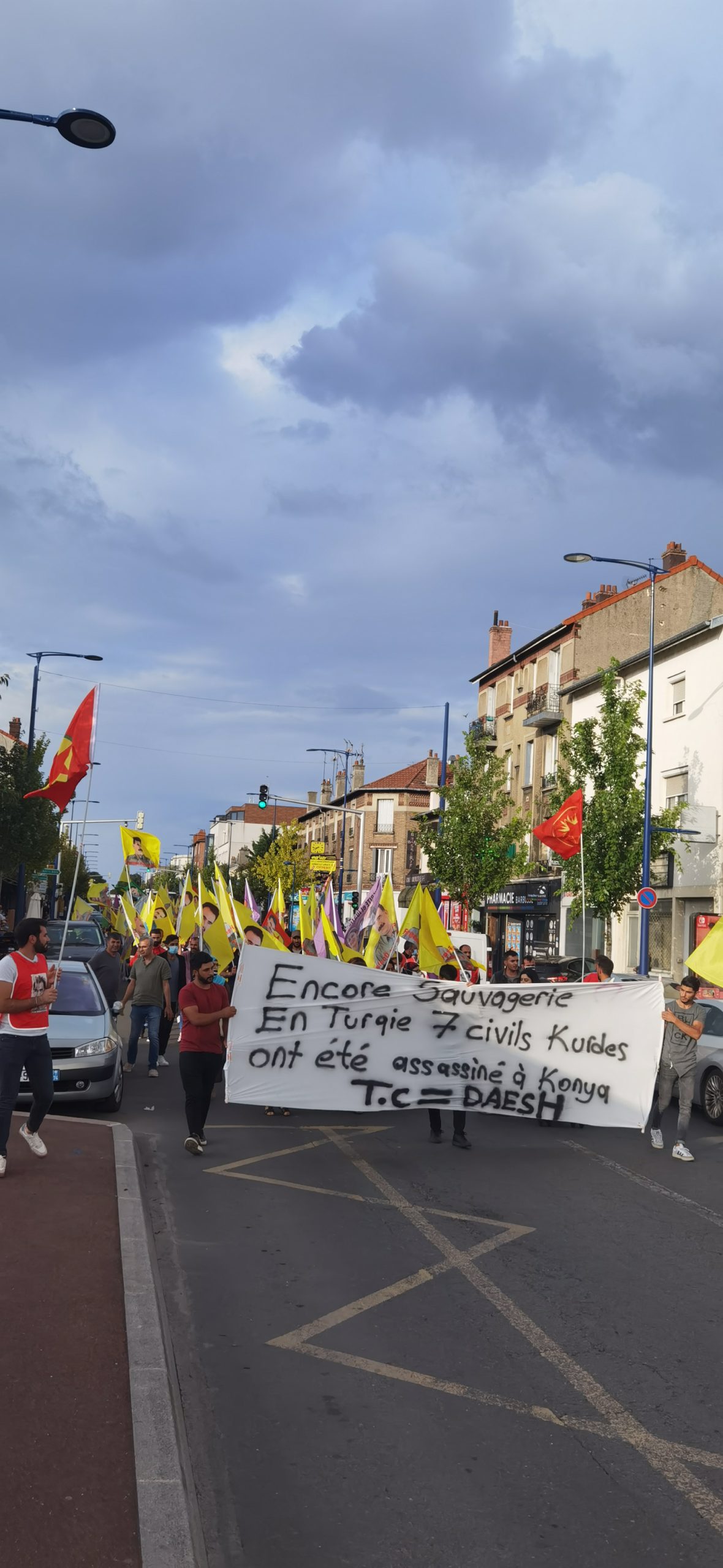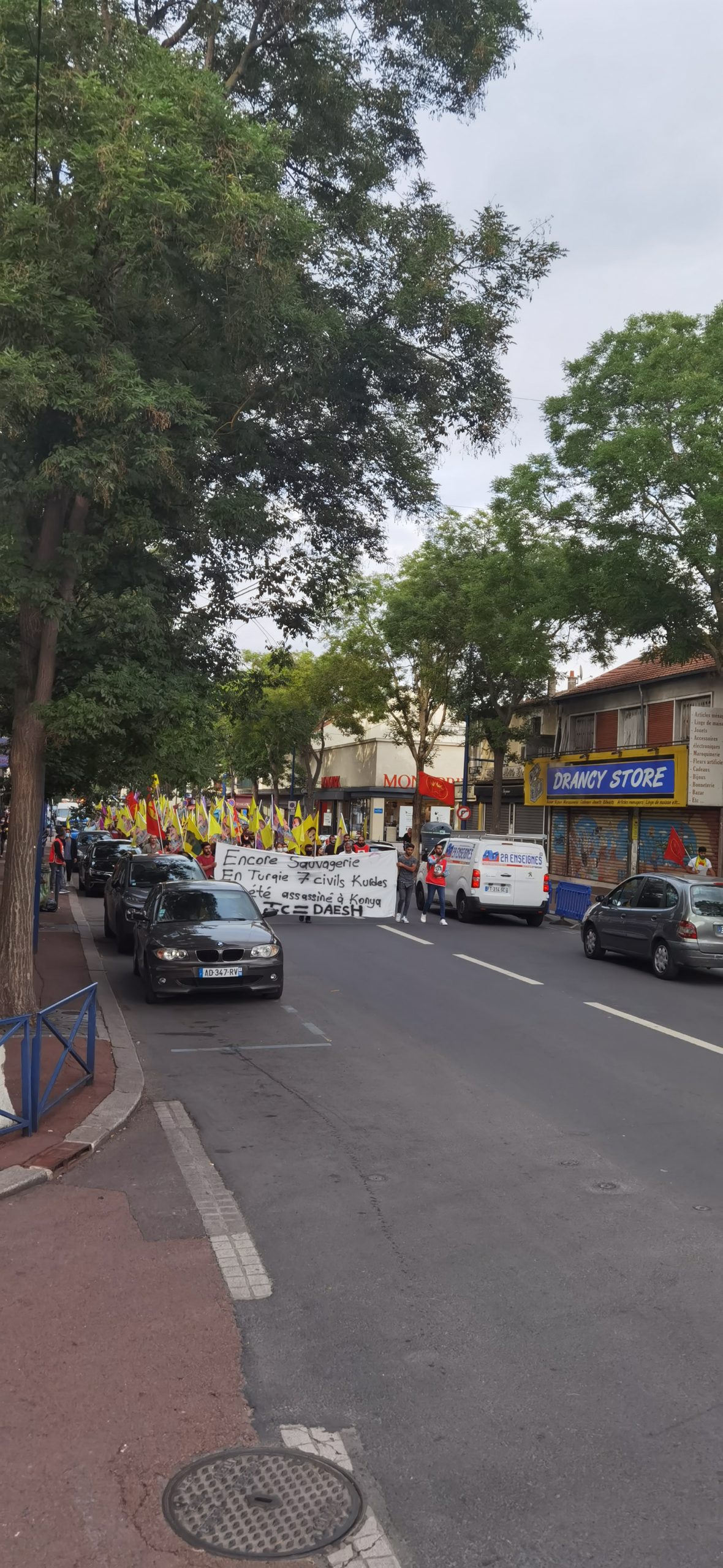Bir diğer eylem Paris’in Drancy banliyösünde gerçekleşti. Drancy Kürt Toplum Merkezi önünde bir araya gelen kitle Konya’da gerçekleşen katliama karşı bir yürüyüş gerçekleştirdi. Yürüyüş boyunca sık sık “Terorist Erdogan”, “A bas le régime fasciste en Turquie (Kahrolsun Faşist Türk Rejimi)” ve “Libere Öcalan” sloganları atıldı.