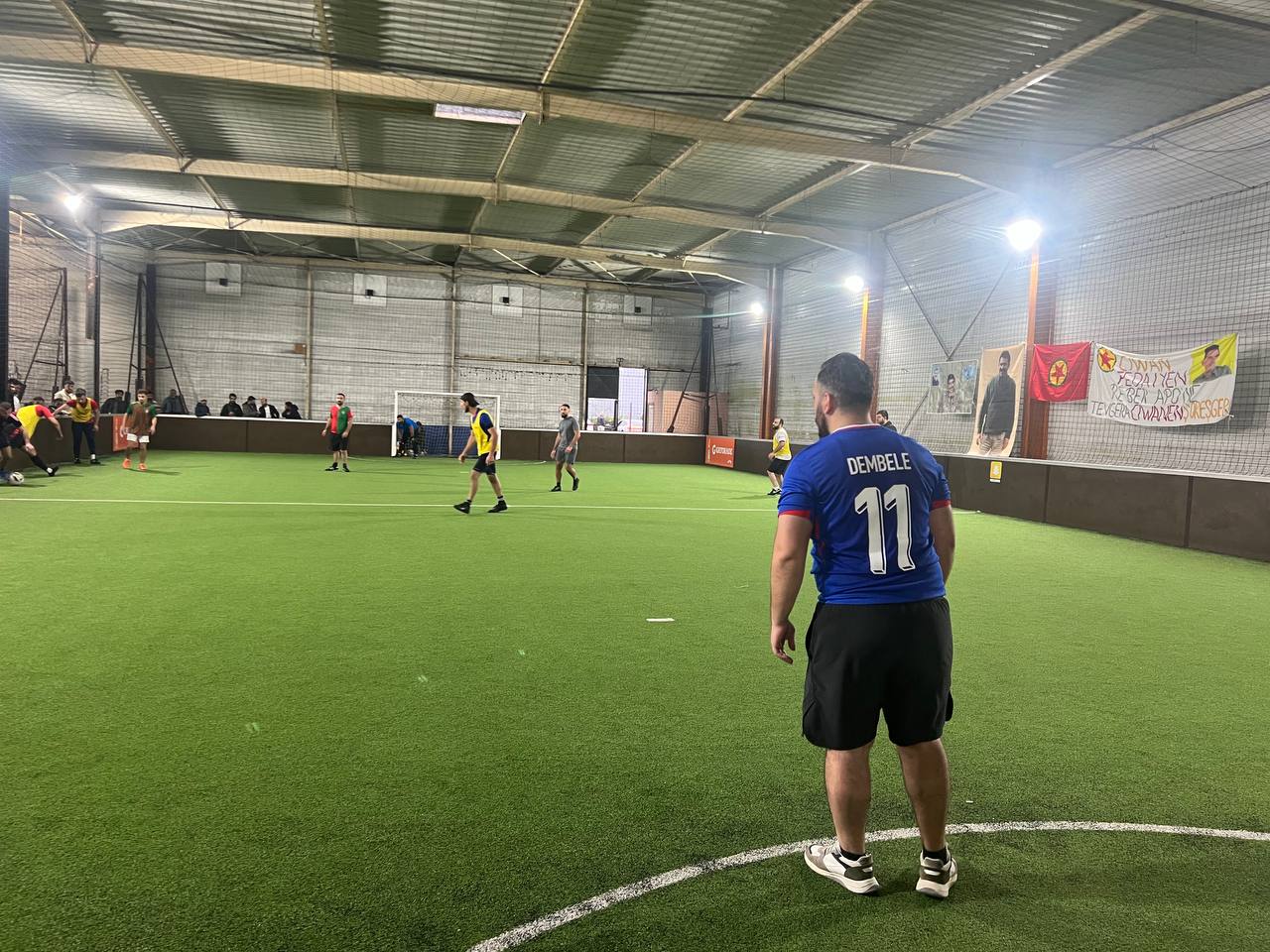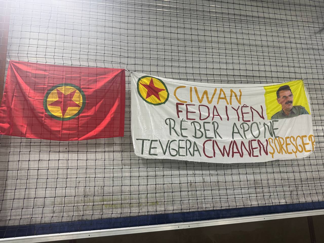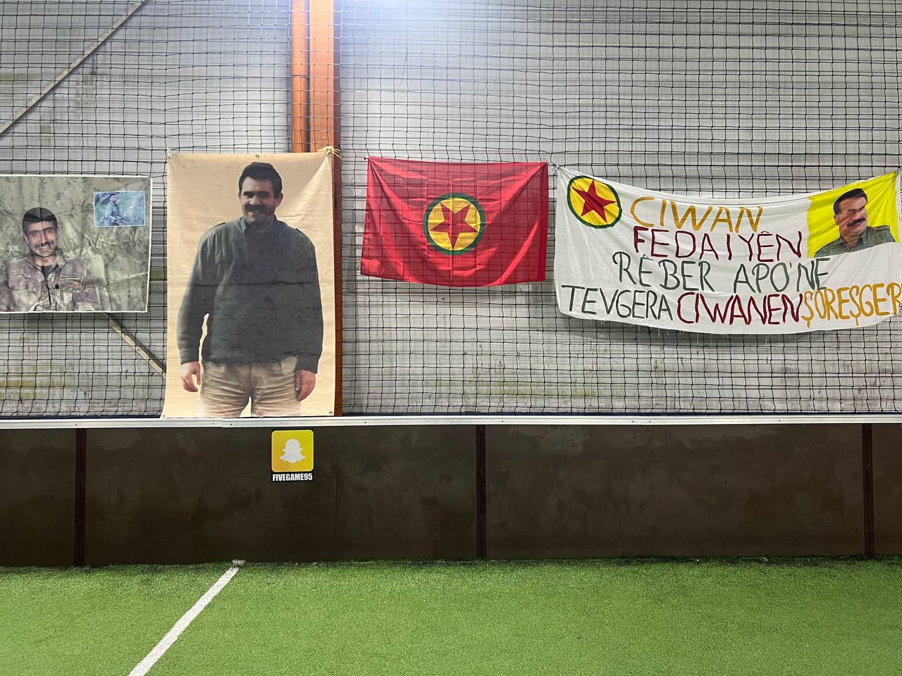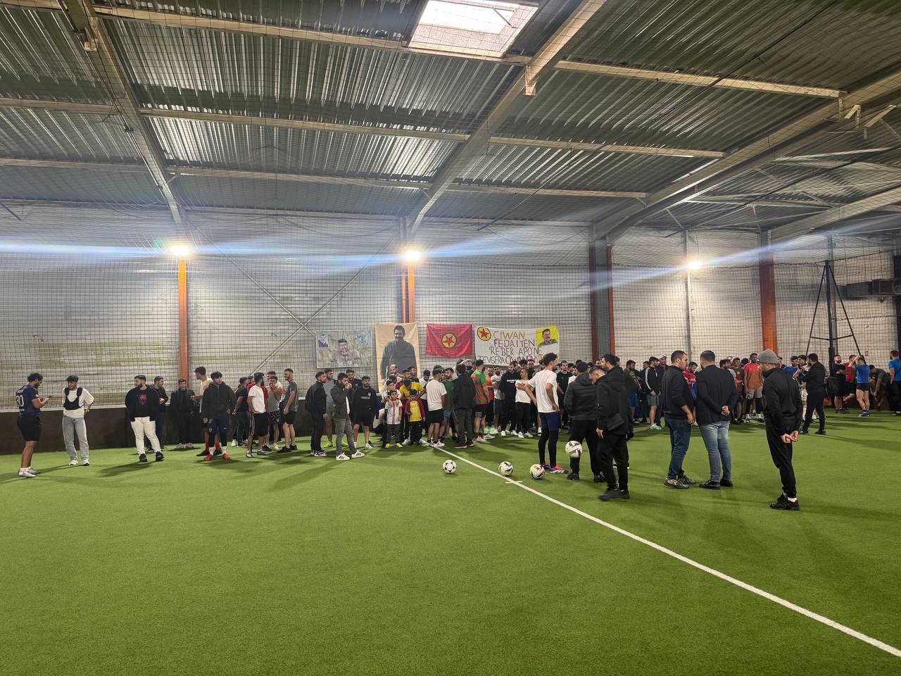 Halı sahaya Önder APO’nun resimleri, PKK bayrağı, Şehit Rûstem Serhed’in resmi asıldı. Ayrıca Önder APO’nun kitapları ve Stêrka Ciwan dergisinin sergilendiği bir stant açıldı.