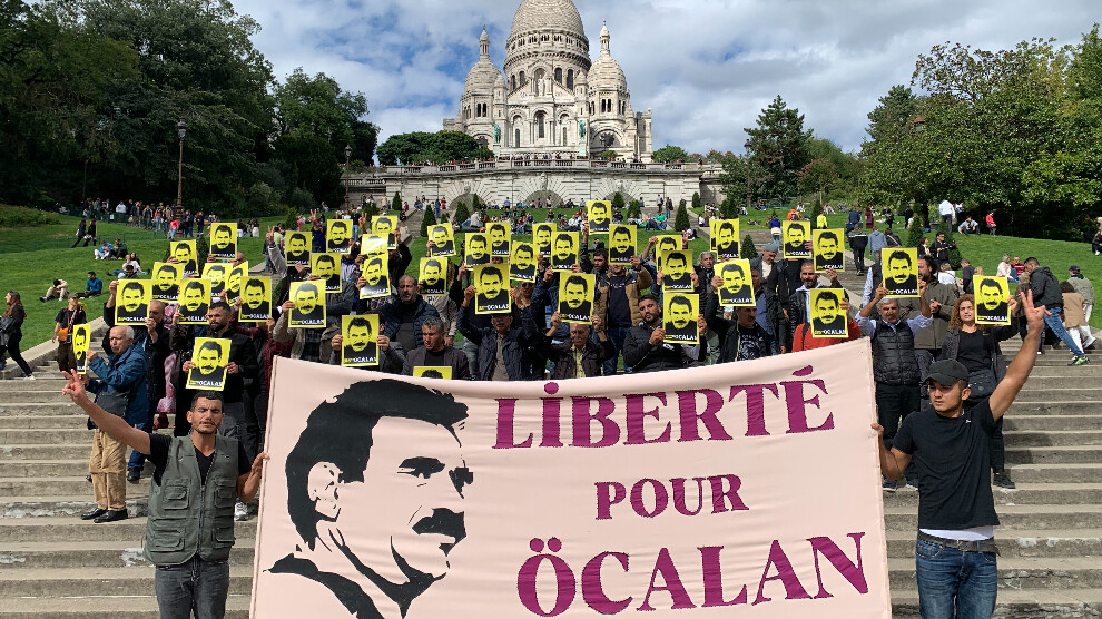 HABER MERKEZİ- Fransa’nın başkenti Paris’te Kürt Halk Önderi Abdullah Öcalan’a yönelik tecridin kaldırılması ve fiziki özgürlüğünün sağlanması amacıyla Kurdistanlılar ve dostlarının katılımıyla Beyaz Kilise’de (Sacré Coeur) bir sivil itaatsizlik eylemi yapıldı.