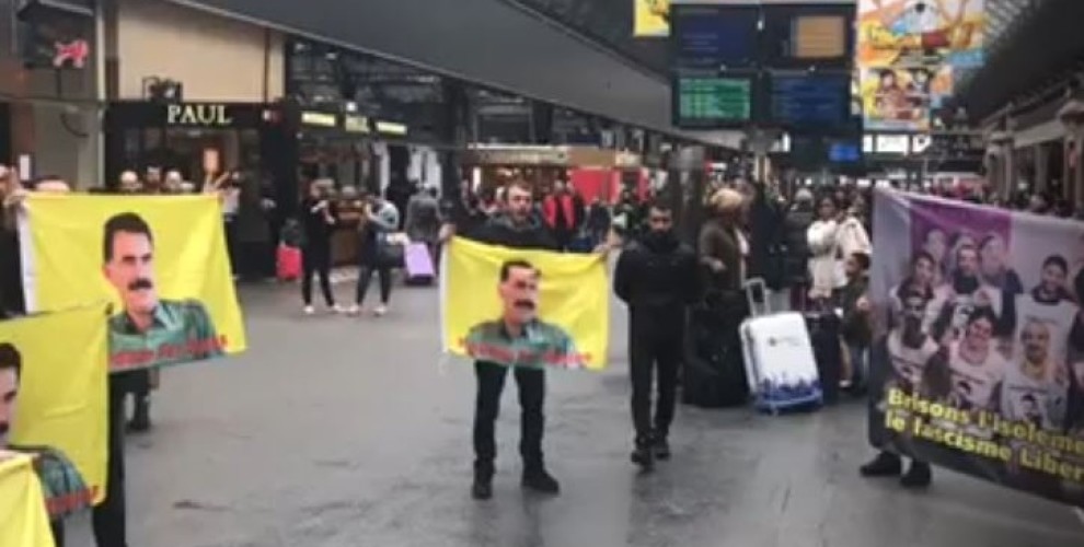 Halklar Önderi Abdullah Öcalan’ın posterlerinin de açıldığı eylemde sık sık, Fransızca, “Biji Serok Apo”, “Katil Erdoğan” sloganları atıldı.