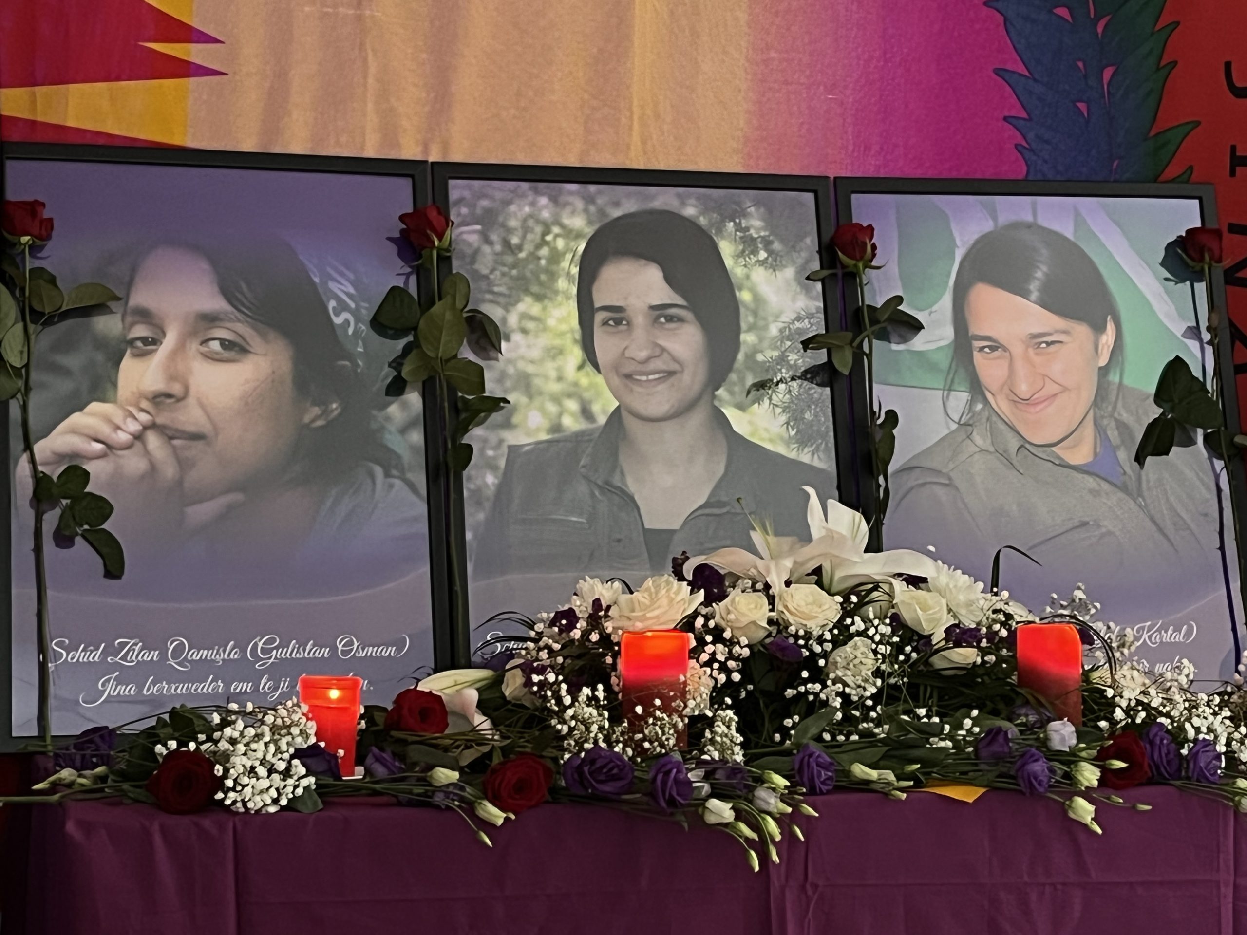 DRANCY – Drancy’deki Paris Komünü’nde düzenlenen anma törenine katılan onlarca kişi, Rêber APO’nun 21. yüzyıl devrimi paradigması olan kadınların özgürleşmesi için mücadele eden Şehid Delal Nurhak, Şehid Ronahi Dersim, Şehid Zilan Qamişlo ve Şehid Tekoşin Amed anıldı. Hazır bulunanlara Devrim şehitlerinin şahsiyetlerini anımsatan bir sinevizyon sunuldu ve konuşmalar yapıldı.