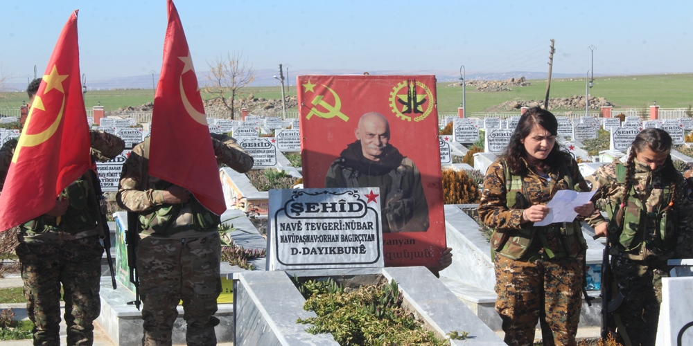 HABER MERKEZİ – TKP-ML TİKKO Rojava Komutanlığı tarafından Parti ve devrim şehitleri anıldı. Anmaya Şehit Nubar Ozanyan Taburu ve Haseke Ermeni Sosyal Meclisi de katıldı. Şehit Xebat Derik Şehitliği’nde gerçekleşen anma, askeri tören ve saygı duruşuyla başladı. Ardından TKP-ML Ortadoğu Parti Komitesi’nin Kürtçe açıklaması, Şehit Nubar Ozanyan Taburu ve Haseke Ermeni Sosyal Meclisi’nin Arapça açıklamaları okundu.