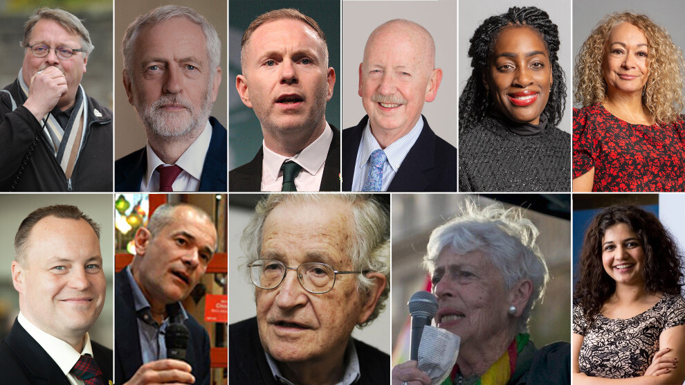 “John Austin, Mike Arnott, President STUC, Baroness Blower of Starch Green, Prof .Bill Bowring, Mickey Brady, MP for Mid Ulster, Julie Christie, Noam Chomsky, Jeremy Corbyn MP, Maggie Cook, UNISON women activist, Prof Mary Davis, Lord Dholakia, Simon Dubbins, UNITE International, Dr Radha D’Souza (writer), Desmond Fernandes, Lindsey German, Convenor STWC, Melanie Gingell, Christopher Gingell, Prof Dr. Michael Gunter, Rahila Gupta, author, journalist, Chris Hazzard Sinn Fein MP, Nick Hildyard, policy advisor, Dafydd Iwan, Former President Plaid Cymru, George Katsiaficas, Greek-American, James Kelman, novelist, Baroness Helena Kennedy KC, Jean Lambert, former MEP, Dr Les Levidow, Open University, Gawain Little, GFTU General Secretary, Elfyn Llwyd, John McDonnell MP, Mike Mansfield KC, David Morgan, journalist, Conor Murphy, Sinn Fein MLA, Dr Thomas Jeffrey Miley, Dr. Jessica Ayesha Northey, Kate Osamor MP, Margaret Owen OBE, Ali Gul Ozbek, Former Councillor and Mayor of Haringey. Gareth Peirce, Dr Felix Padel, anthropologist, Maxine Peake, actor, Dr Thomas Phillips, Liverpool John Moores University, Father Joe Ryan, Dr Thomas Schmidt, ELDH Europe, Bert Schouwenburg, International Trade, Roza Salih, Scottish politician, Tony Simpson, Bertrand Russell Peace, Stephen Smellie, PIK Trade Union, Jonathan Steele, journalist, Chris Stephens SNP MP, Gianni Tognoni, General Secretary, Dr Federico Venturini, Associate, Dr Tom Wakeford, Dr Derek Wall, Julie Ward, former MEP, Frances Webber, former Vice-Chair of, Kariane Westrheim, Chair, EU Turkey Civic Commission (EUTCC), Hywel Williams MP. Kim Johnson MP, Rohash Shexo, Kongra Star Women’s Movement, Suna Alan, Jiyan Kurdish Women’s Assembly, Esra Asiye Guden, co-chair of European Confederation of Immigrants, Rojin Mikuryani, PhD Researcher at University College Cork, Ireland, Sara Kermanian, PhD Researcher at University College Cork, Ireland. Turkan Ozcan &Agit Karatas, Kurdish People’s Democratic Assembly of Britain.”