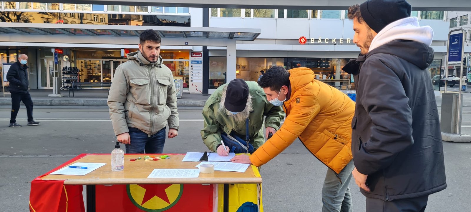 Hafta sonunda da İsviçre’nin birçok merkezde Kürt Toplum Merkezleri, kadın ve gençlik meclisleri tarafından imza stantları açılacak.