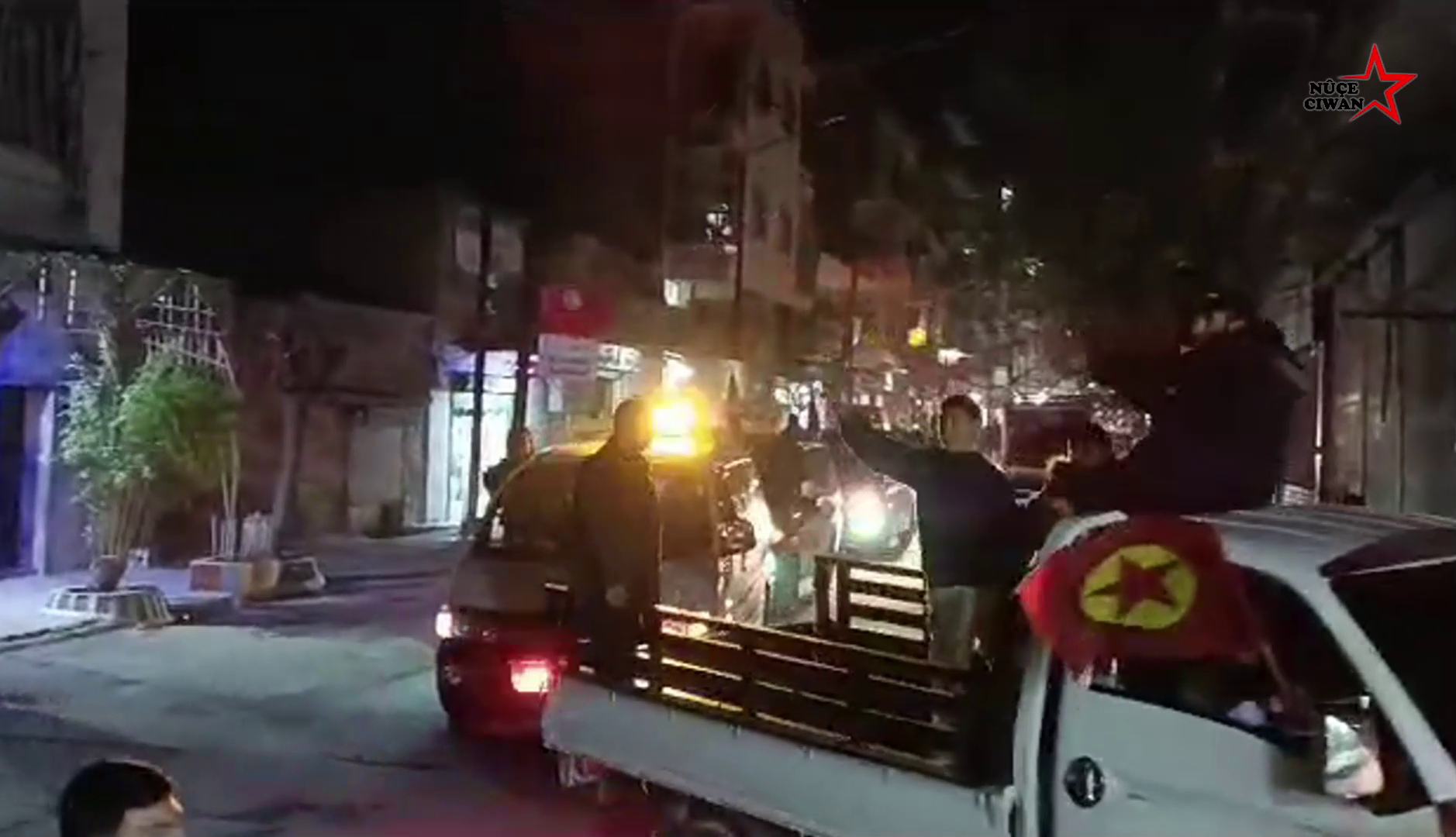 PKK ve TCŞ bayrakları ve Önder APO’nun posterleriyle bezenmiş onlarca araçtan oluşan konvoy, Qamışlo merkezinde gençler trafından atılan sloganlar eşliğinde uzun süre dolaştı.