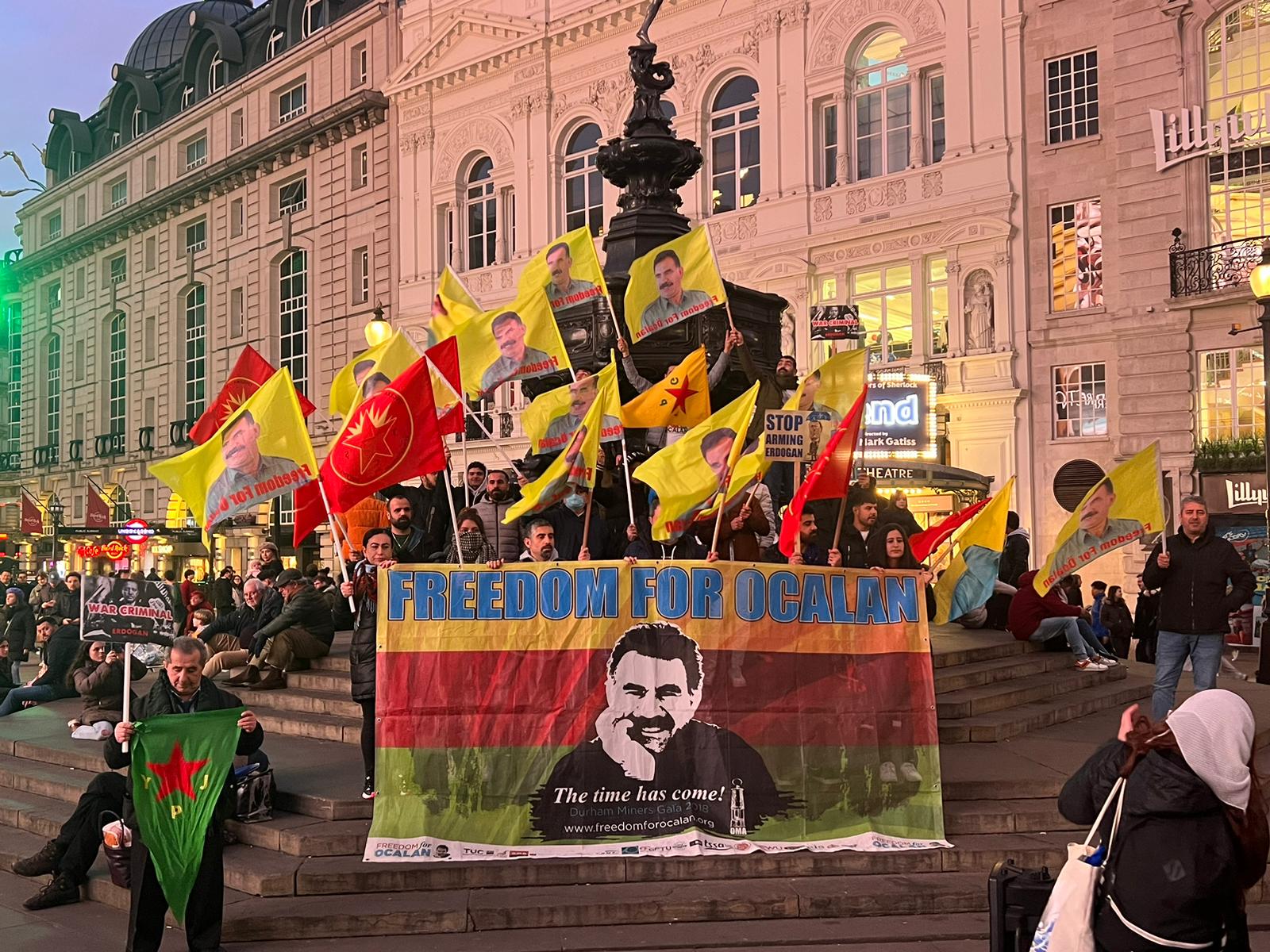 Bugün Londra'da TCŞ ve TekoJIN üyesi gençler Piccadilly Circus'ta "Öcalan'a Özgürlük" sloganıyla bir gösteri düzenledi.