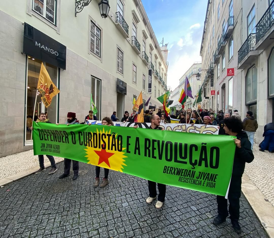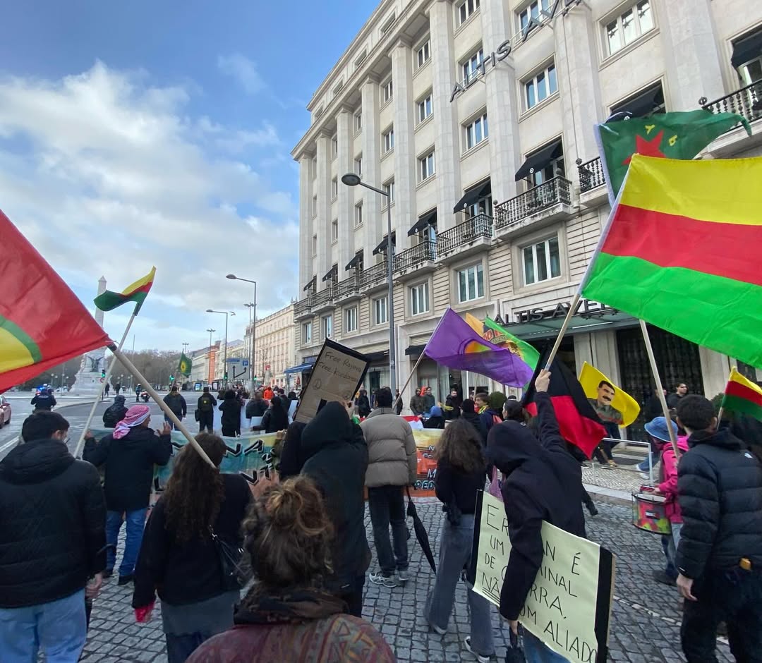 HABER MERKEZİ – Portekiz’in başkenti Lizbon’da gençler, Rojava Devrimi’ni savunmak amacıyla yürüyüş düzenledi. “Kürdistan Halkları Dayanışma Platformu”nun çağrısıyla gerçekleştirilen yürüyüş, “Soykırımı durdurun; devrimi savunun” sloganıyla Camões Meydanı’ndan başlayarak Monet Meydanı’na kadar sürdü.