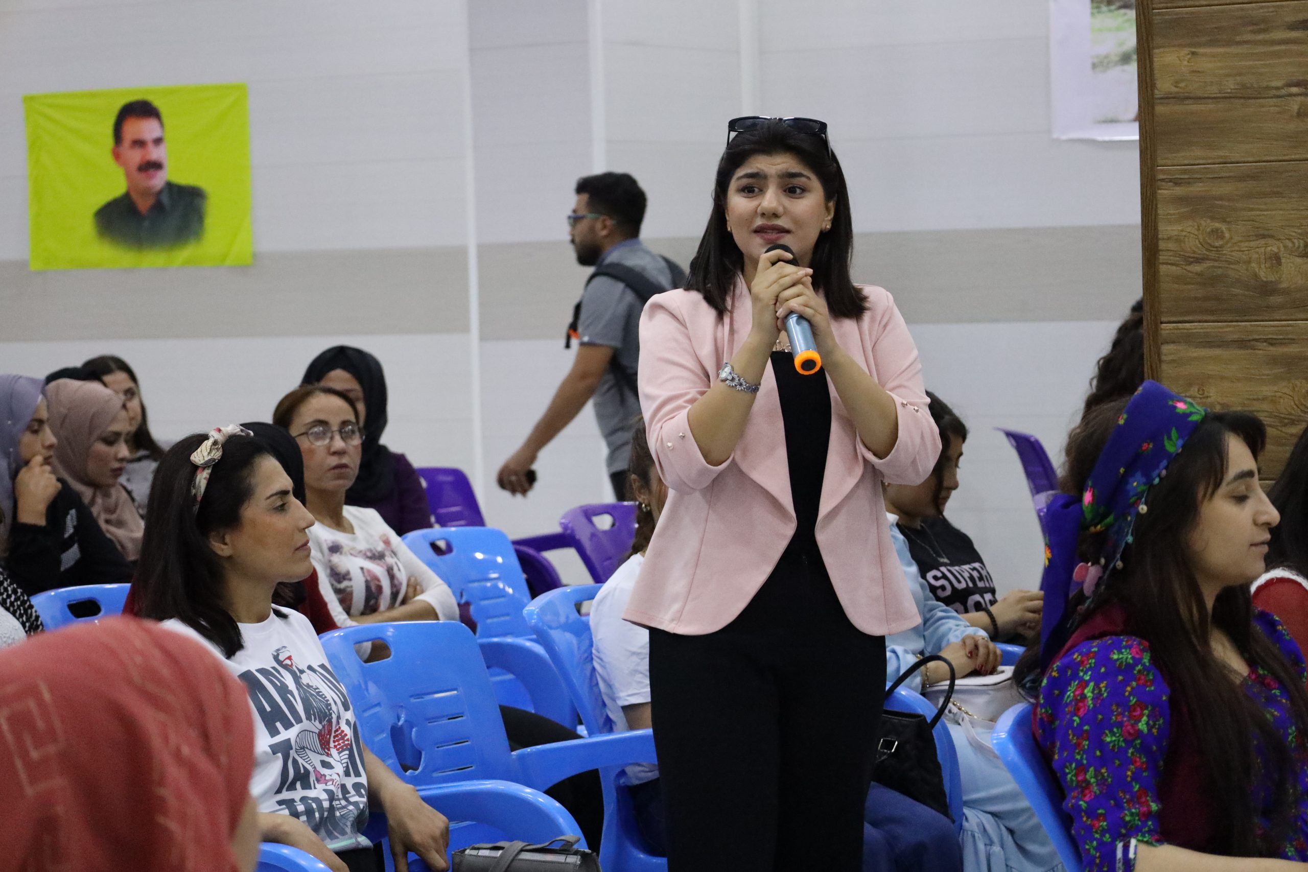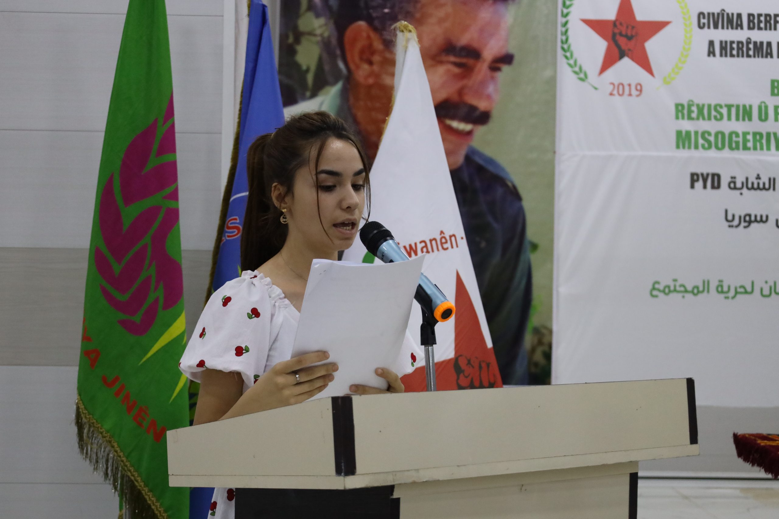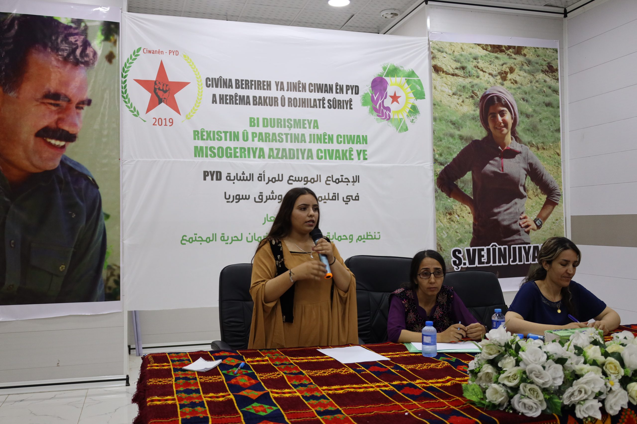 Toplantı saygı duruşuyla başladı. Ardından PYD Genç Kadınları adına açılış konuşmasını Sara Hüseyin yaptı. Hüseyin konuşmasına şehit Zilan’ı (Zeynep Kınacı) anarak başladı. Konuşmanın devamında Şehit Zilan’ın gerçekleştirdiği eyleme, parti ve halk arasında yarattığı etkiye, ayrıca düşmana ne kadar büyük derece bir darbe vurulduğuna dikkat çekildi. Ardından Önder APO’nun genç kadınların örgütlenmesinin önemine ilişkin değerlendirmelerinin anlatıldığı video izlendi.