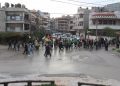 Gençler ve genç kadınlar tarafından başlatılan yürüyüş BM önüne kadar devam ettikten sonra burada mitinge dönüştü.