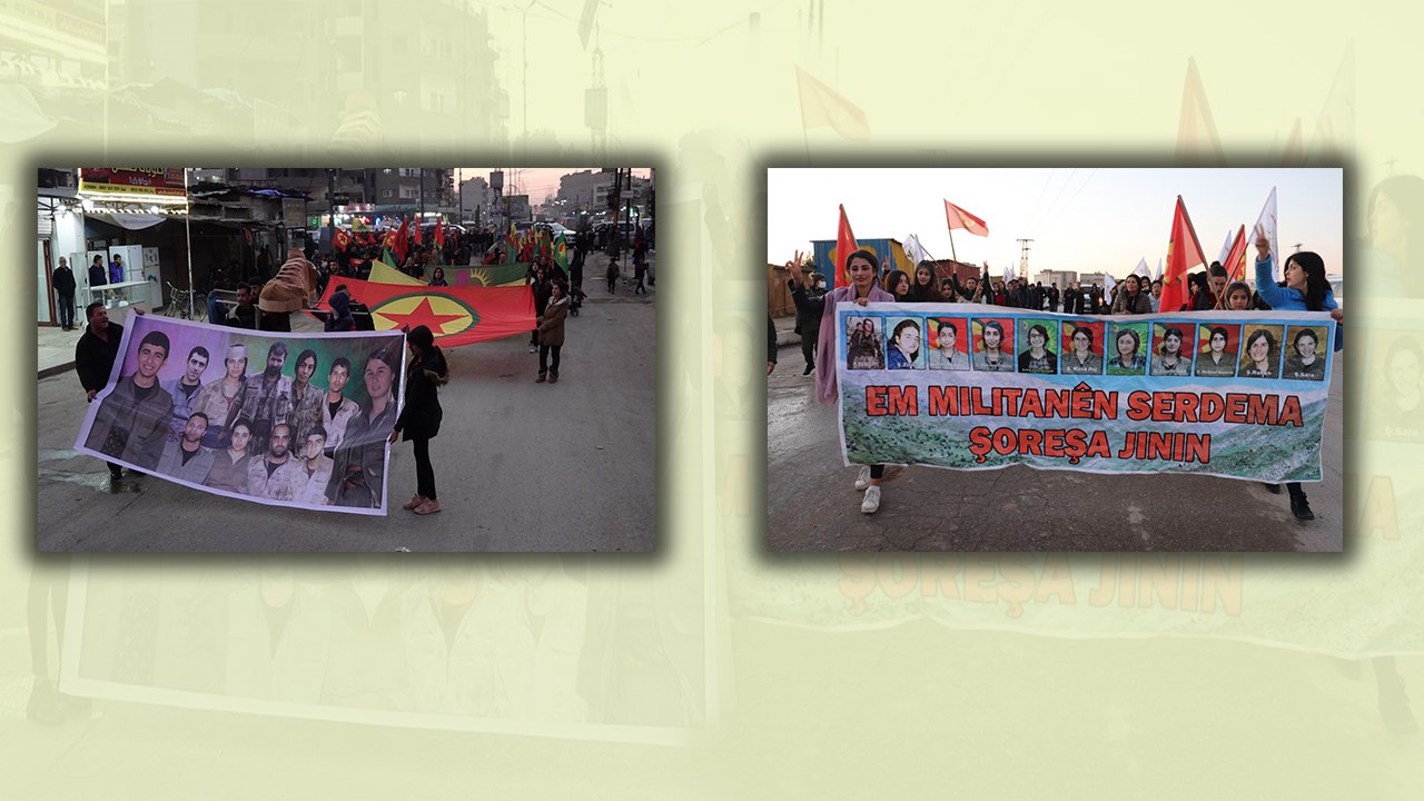Bunun üzerine Yekîtiya Jinên Ciwan, Tevgera Ciwanên Şoreşger Qamişlo kentinde alanlara inerken, Tevgera Xwendekarên Demokratik üyeleri ise Kobanê kentinde eylemdeydi.