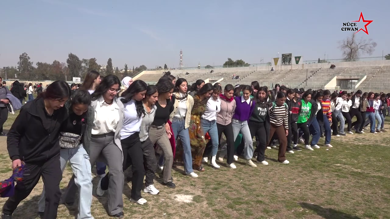 QAMIŞLO- Yurtsever Öğrenci Birliği, 8 Mart Dünya Emekçi Kadınlar Günü vesilesiyle Qamişlo’daki 12 Mart Şehitler Stadı’nda etkinlik düzenledi. Etkinlikte çok sayıda öğrenci hazır bulundu.