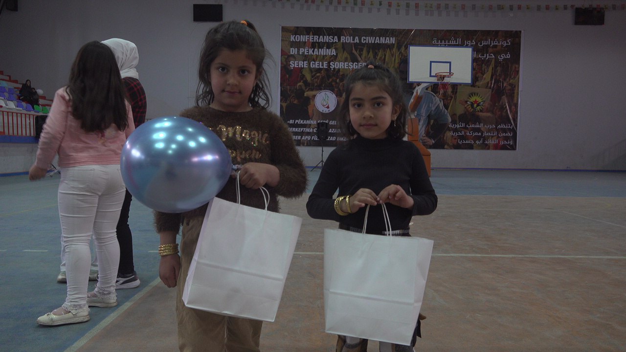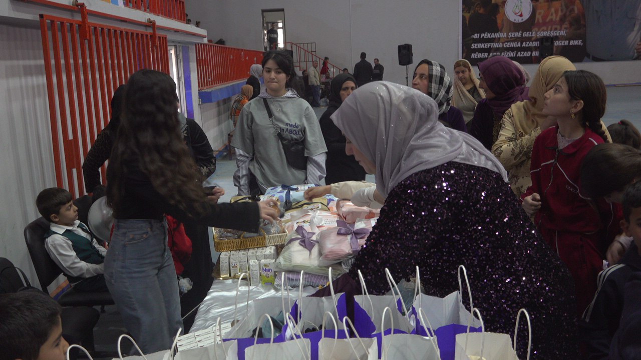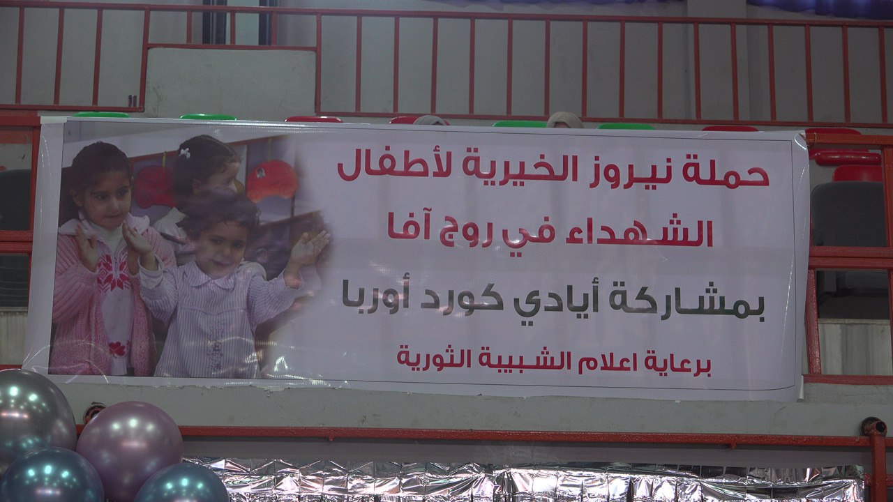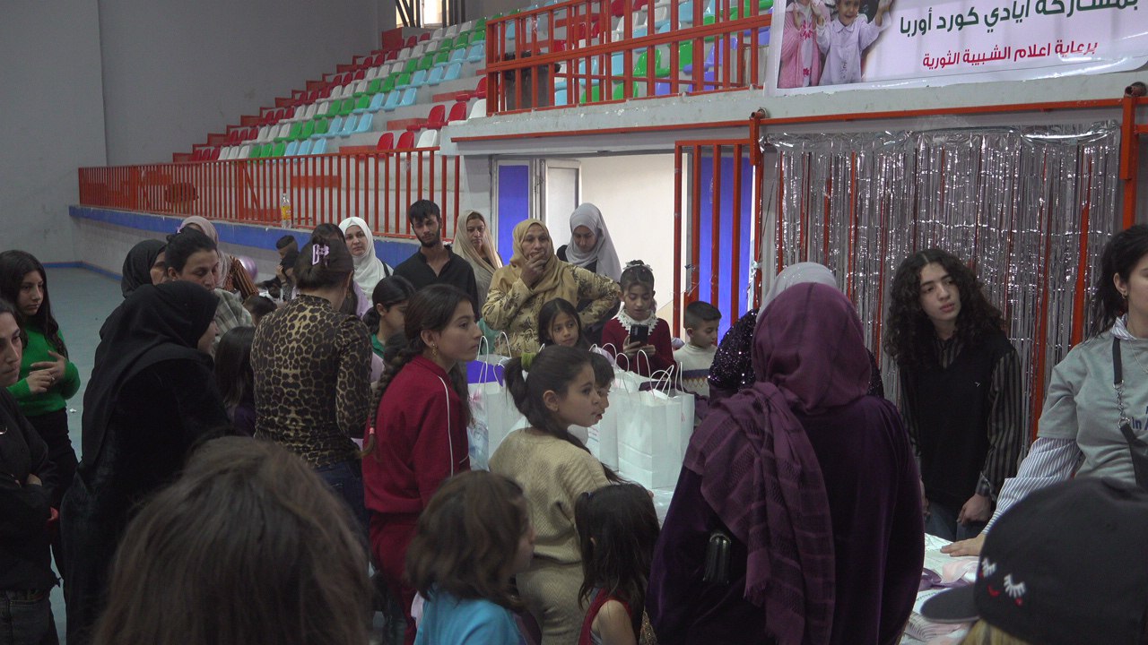 Qamişlo Spor salonunda düzenenlenen etkinliğe şehit aileleri ve çocukları katılım gösterdi. Çocuklara Newroz bayramının ve Ramazan bayramının yaklaşması vesilesiyle kıyafetler dağıtıldı.