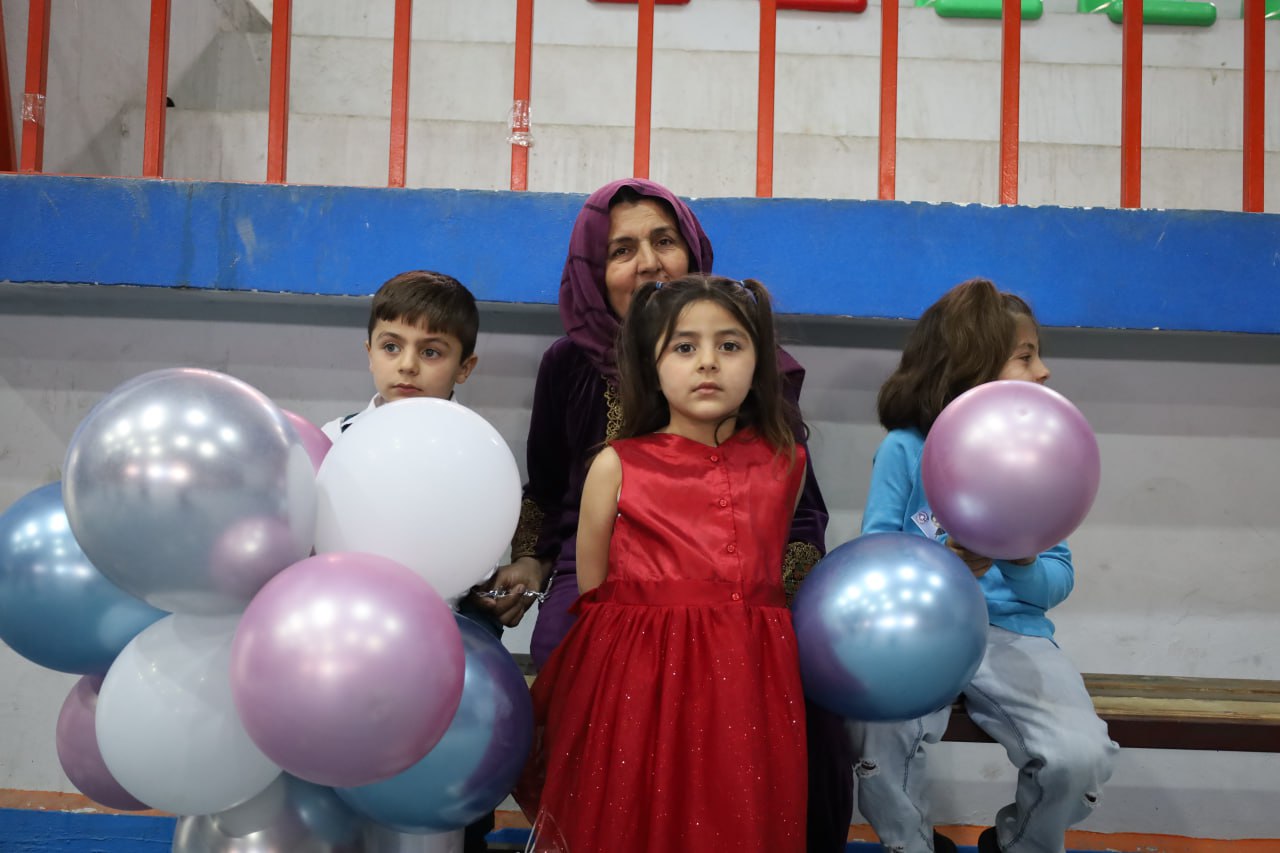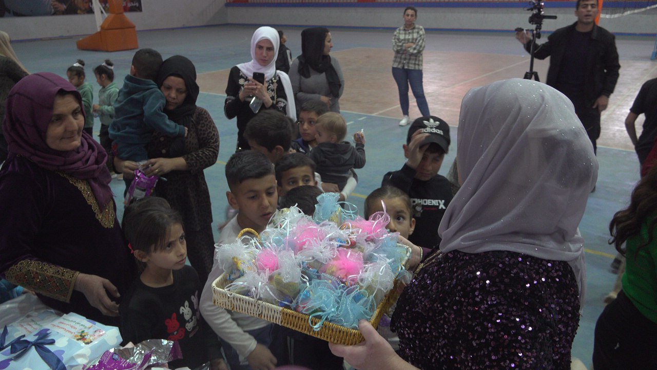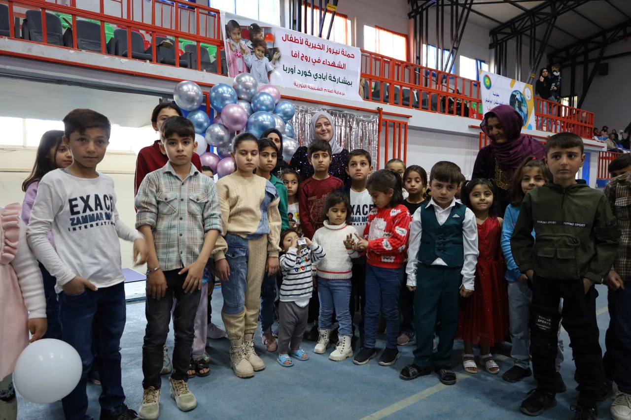 Qamişlo Spor salonunda düzenenlenen etkinliğe şehit aileleri ve çocukları katılım gösterdi. Çocuklara Newroz bayramının ve Ramazan bayramının yaklaşması vesilesiyle kıyafetler dağıtıldı.