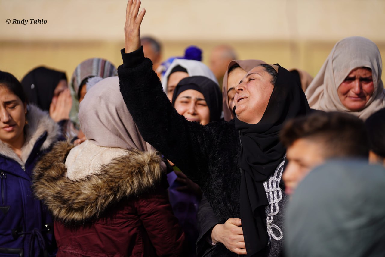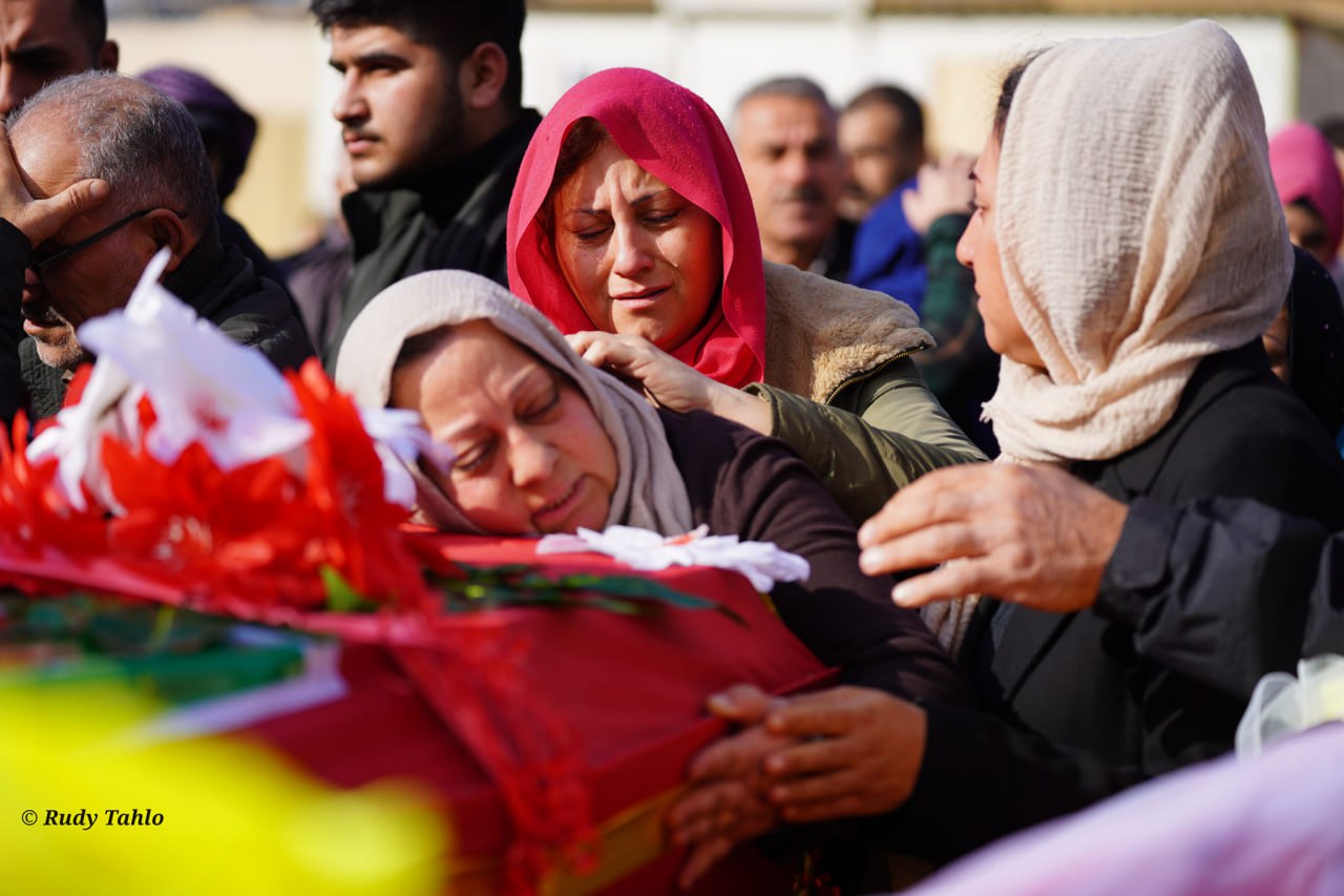 QAMIŞLO- “Berxwedan jiyan e” ve “Şehîd namirin” sloganları atan binlerce Cizre Kantonu sakini, Ferhan Xelef, Berivan Mihemed, Mihemed Hisên Mihemed, Riyad Hemo, Renas Hemid ve Ferhan Temê’nin naaşlarını Şehit Delil Saroxan Şehitliği’ne doğru omuzlarında taşıdı.