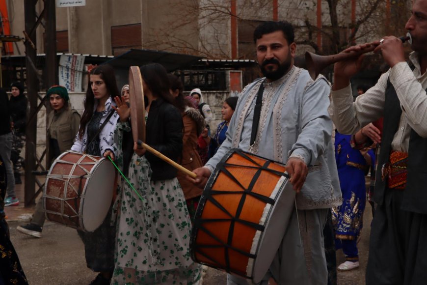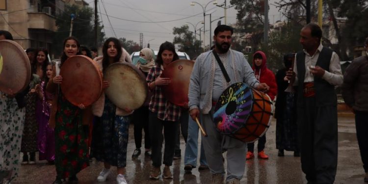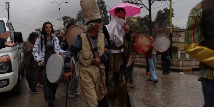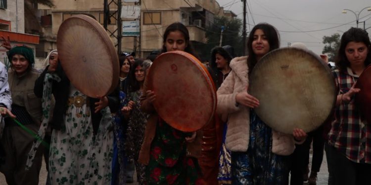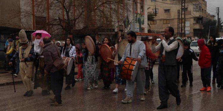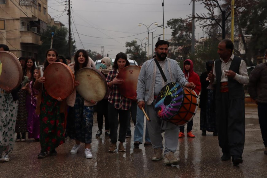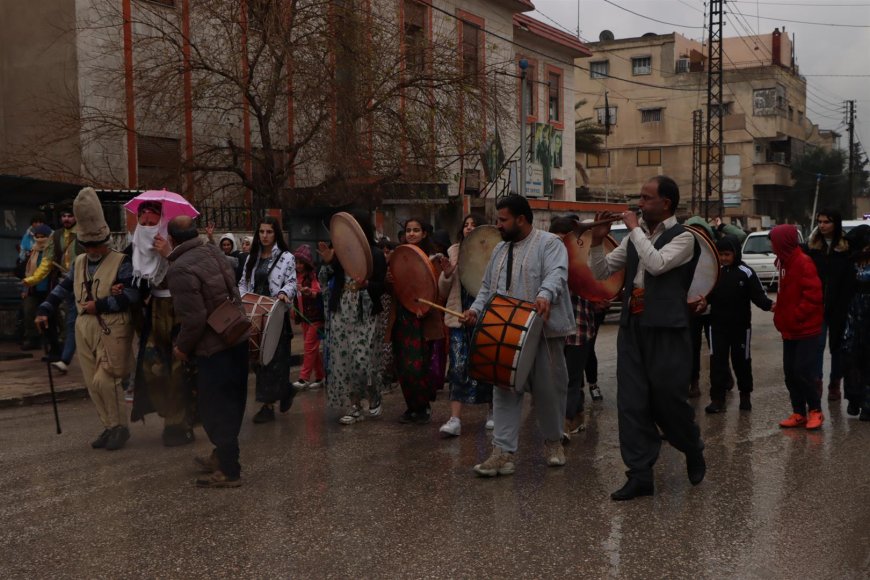 QAMIŞLO- Stêrk Çocuk Örgütü öncülüğünde Qamişlo’da düzenlenen Serê Salê etkinliğine çok sayıda çocuk katıldı. Kutlamaya sanatçılar da katıldı. Çocuklar çarşıyı gezerek, söyledikleri şarkılarla Serê Salê’yi kutladı.