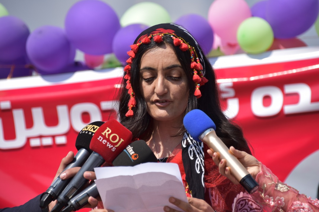 8 Mart Hazırlık Komitesi adına Binarê Qendil Halk Meclisi Eşbaşkanı Gulale Mihemed konuştu.