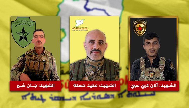 Her 3 şehidimizin değerli ailelerine ve halkımıza başsağlığı diliyoruz. Şehitlerimizin, uğruna şehit düştüğü hedefleri, işgal edilen bölgeleri özgürleştirme ve mücadeleye devam edeceğimizin sözünü yineliyoruz.