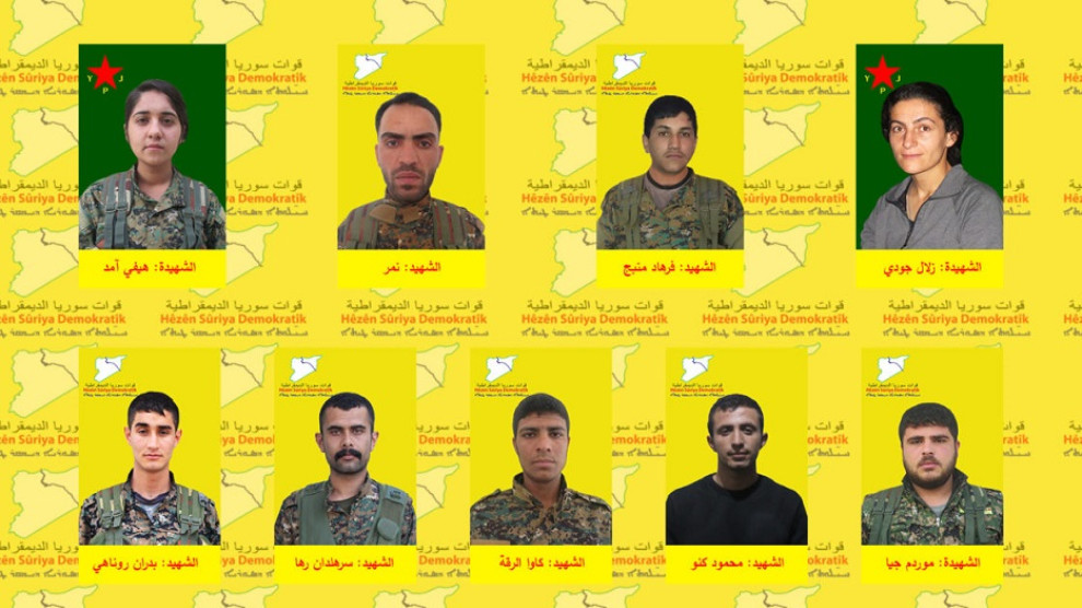 ROJAVA – Yazılı bir açıklama yapan Demokratik Suriye Güçleri (QSD) Basın Merkezi, Cenga Rojava Direnişi ve Reqa’da şehit düşen 9 savaşçının kimlik bilgilerini açıkladı.